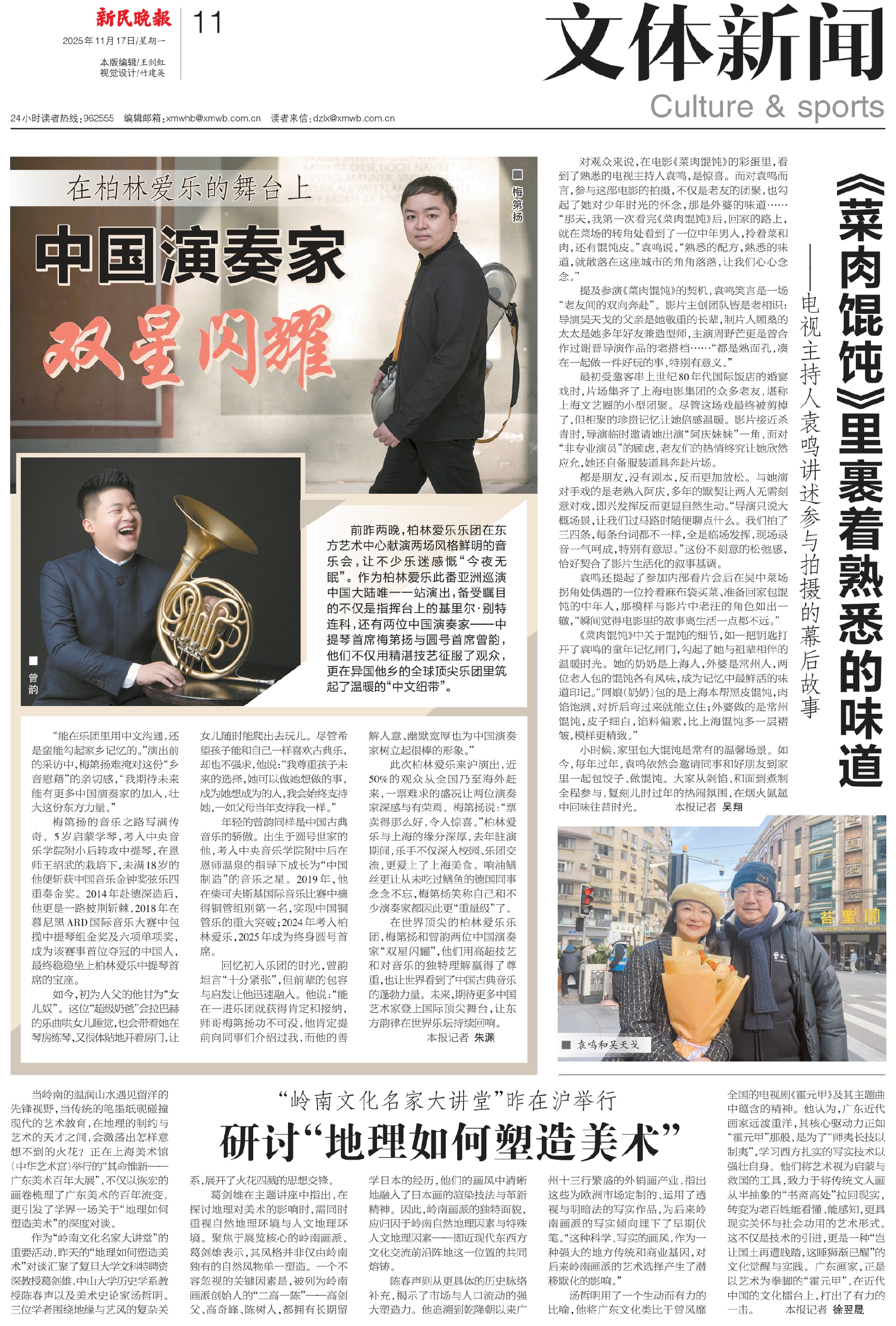 年轻的曾韵同样是中国古典音乐的骄傲。出生于圆号世家的他,考入中央音乐学院附中后在恩师温泉的指导下成长为“中国制造”的音乐之星。2019年,他在柴可夫斯基国际音乐比赛中摘得铜管组别第一名,实现中国铜管乐的重大突破;2024年考入柏林爱乐,2025年成为终身圆号首席。