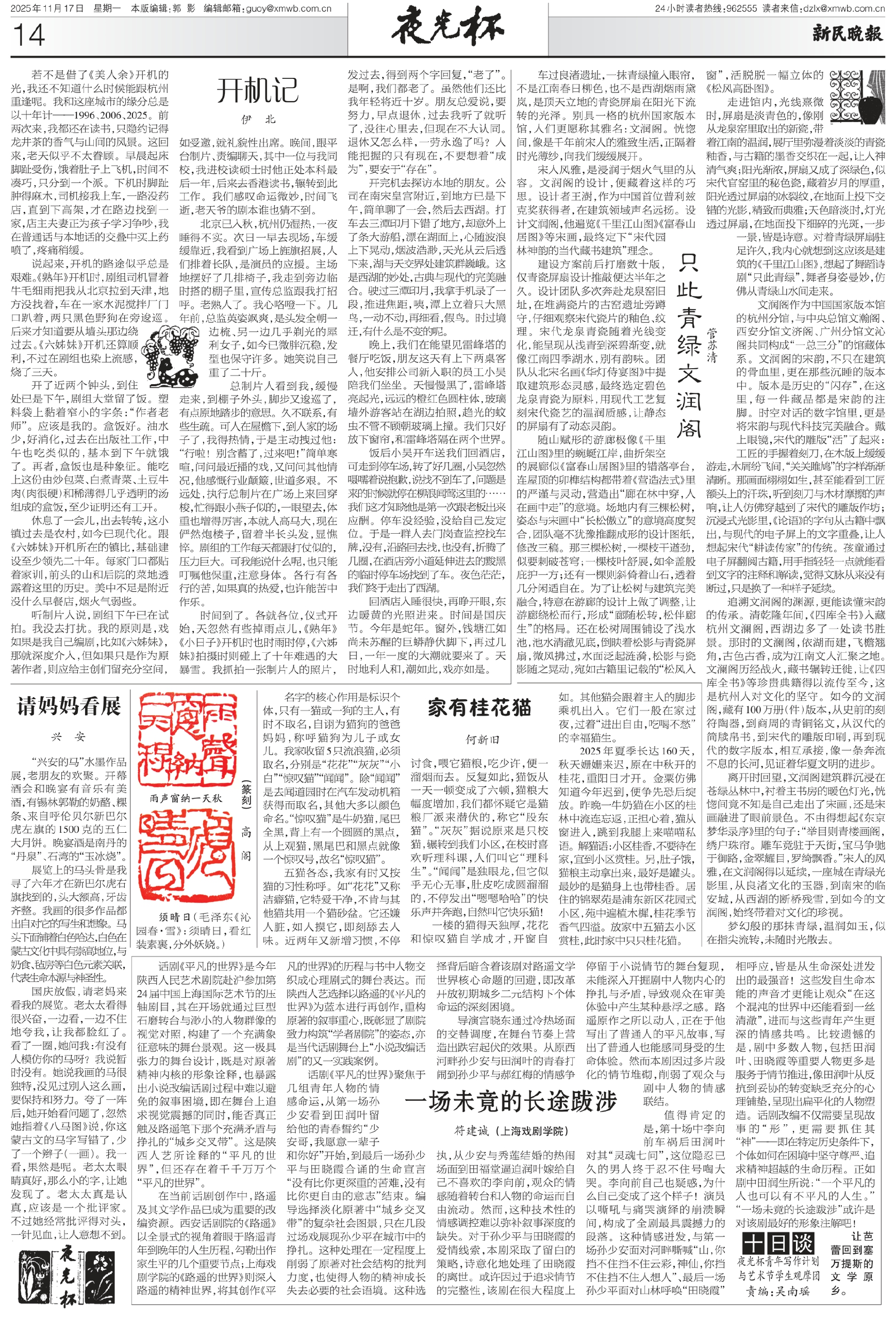 晚上,我们在能望见雷峰塔的餐厅吃饭,朋友这天有上下两桌客人,他安排公司新入职的员工小吴陪我们坐坐。天慢慢黑了,雷峰塔亮起光,远远的橙红色圆柱体,玻璃墙外游客站在湖边拍照,趋光的蚊虫不管不顾朝玻璃上撞。我们只好放下窗帘,和雷峰塔隔在两个世界。
