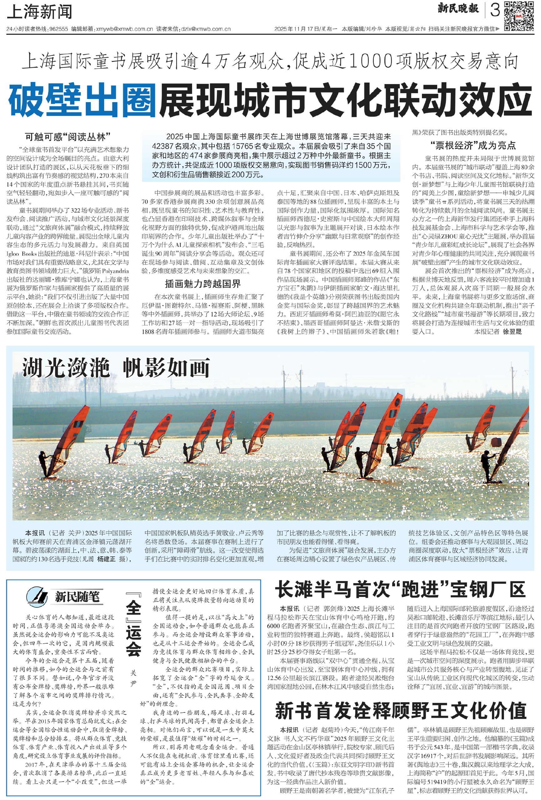 展会首次推出的“票根经济”成为亮点,根据世博天地反馈,周六客流较平时增加逾1万人,总体观展人次高于同期一般展会水平。未来,上海童书展将与更多文旅场馆、商圈及文化机构共建全年联动机制,推出“亲子文化路线”“城市童书漫游”等长期项目,致力将展会打造为连接城市生活与文化体验的重要入口。 本报记者 徐翌晟