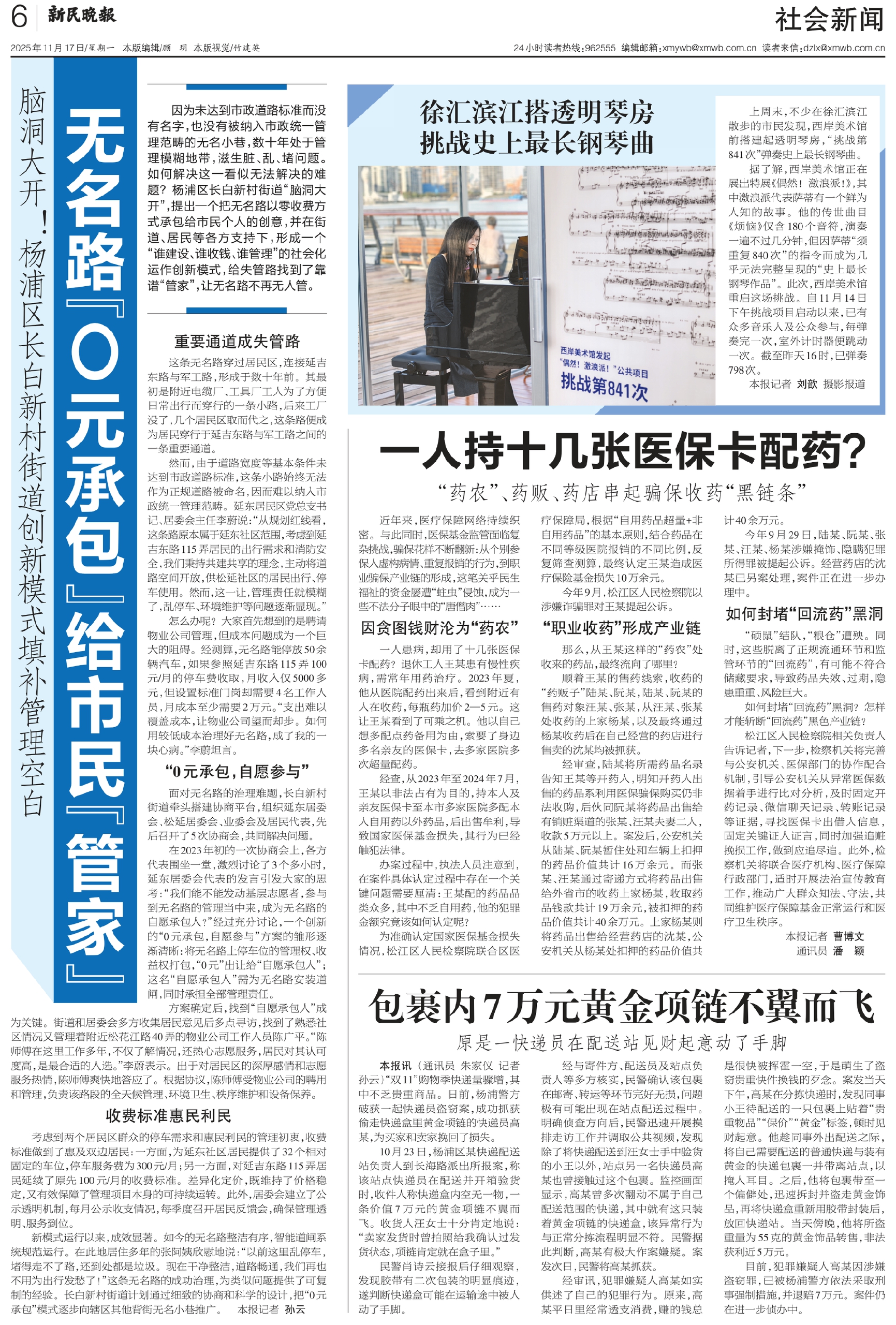 新模式运行以来,成效显著。如今的无名路整洁有序,智能道闸系统规范运行。在此地居住多年的张阿姨欣慰地说:“以前这里乱停车,堵得走不了路,还到处都是垃圾。现在干净整洁,道路畅通,我们再也不用为出行发愁了!”这条无名路的成功治理,为类似问题提供了可复制的经验。长白新村街道计划通过细致的协商和科学的设计,把“0元承包”模式逐步向辖区其他背街无名小巷推广。 本报记者 孙云