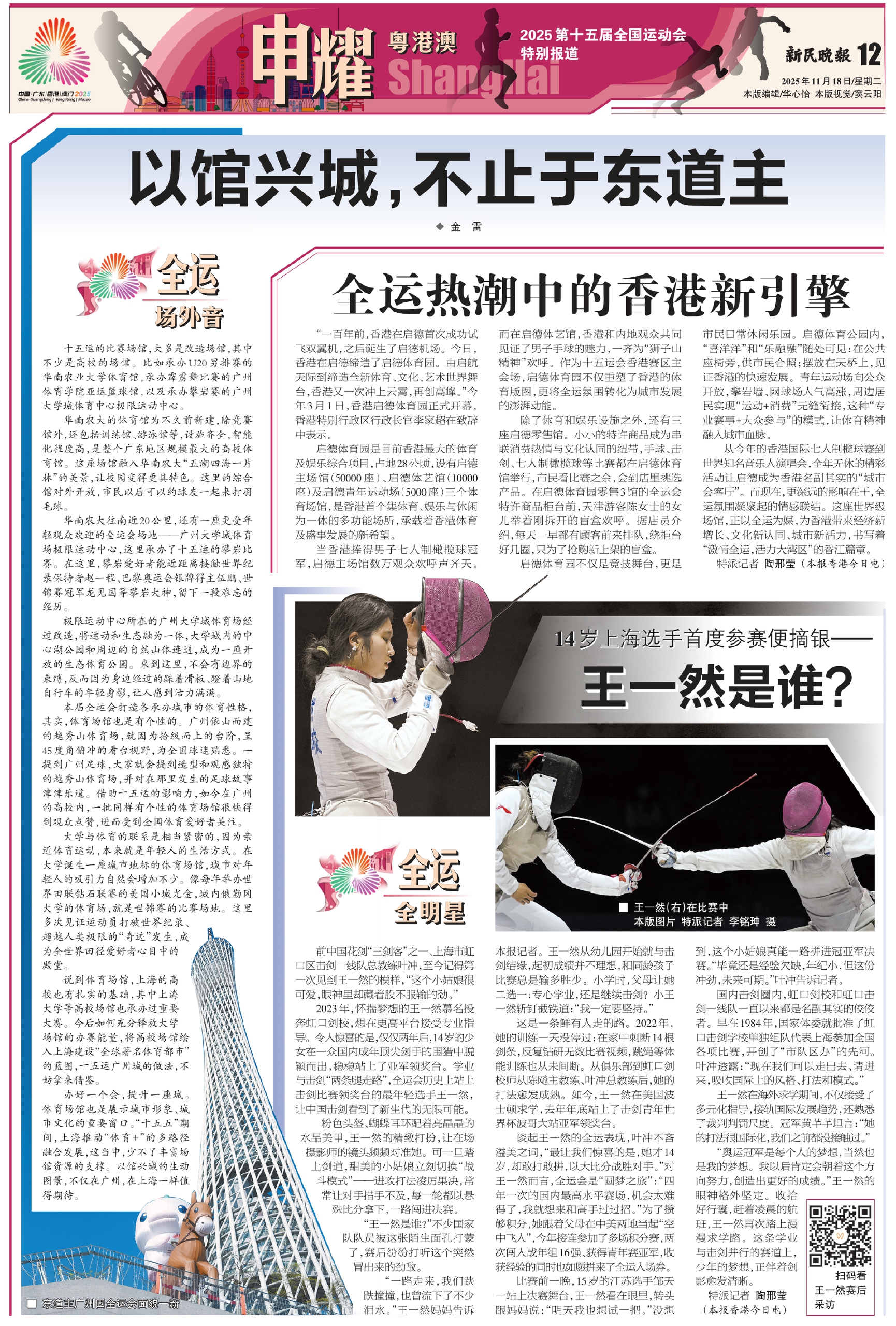 办好一个会,提升一座城。体育场馆也是展示城市形象、城市文化的重要窗口。“十五五”期间,上海推动“体育+”的多路径融合发展,这当中,少不了丰富场馆资源的支撑。以馆兴城的生动图景,不仅在广州,在上海一样值得期待。