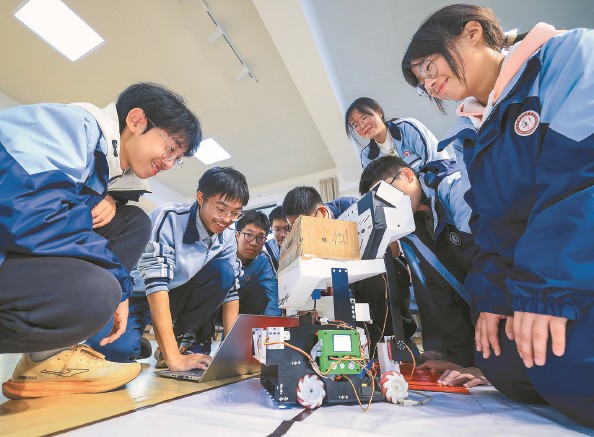 昨天,松江区立达中学机器人兴趣组的学生们在老师的指导下学习机器人编程知识及机器人组装与调试技巧。近年来,松江区持续推动科学教育深入发展,积极引导各中小学校开展科技社团活动、开设特色课程,并通过赛事引领、课程创新、实践赋能等方式,培养学生们的创新思维与实践能力,不断激发他们探索未知、追求科技的兴趣。 本报记者 陶磊 通讯员 蔡斌 摄