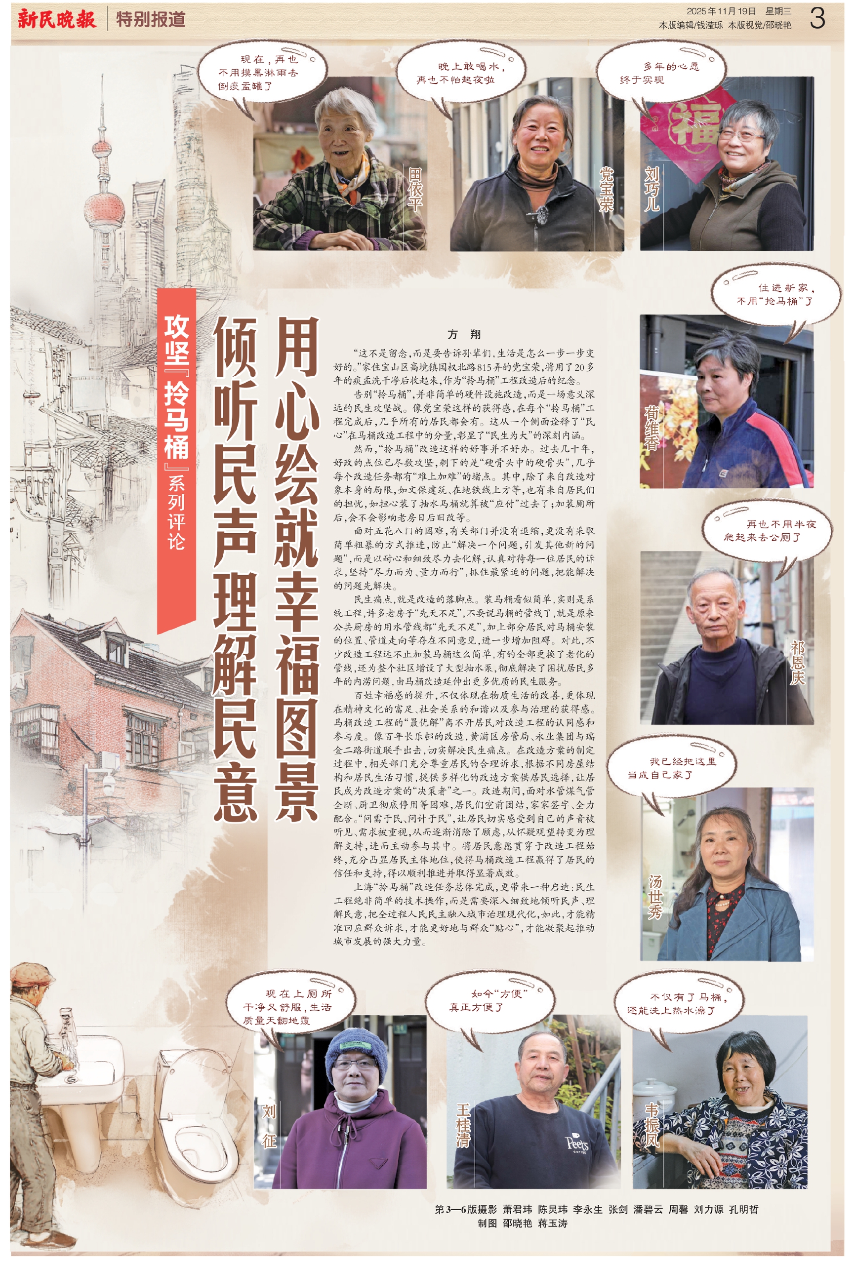 上海“拎马桶”改造任务总体完成,更带来一种启迪:民生工程绝非简单的技术操作,而是需要深入细致地倾听民声、理解民意,把全过程人民民主融入城市治理现代化,如此,才能精准回应群众诉求,才能更好地与群众“贴心”,才能凝聚起推动城市发展的强大力量。