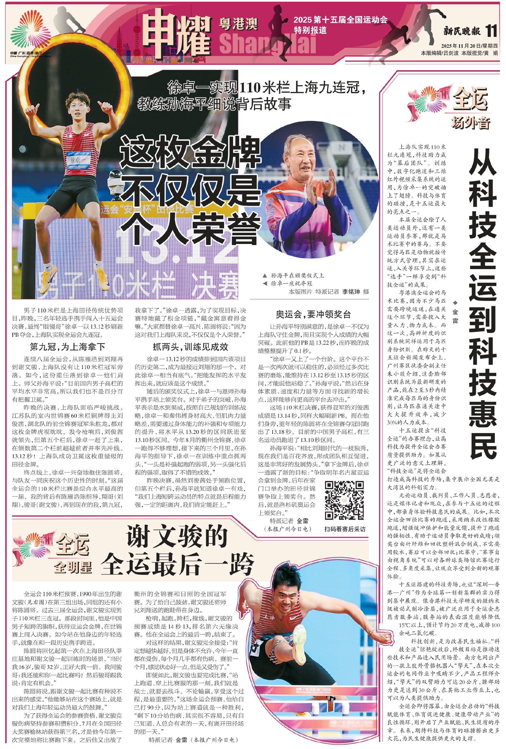 让孙海平特别满意的,是徐卓一不仅为上海队守住金牌,而且实现个人成绩的大幅突破。此前他的PB是13.22秒,而昨晚的成绩整整提升了0.1秒。