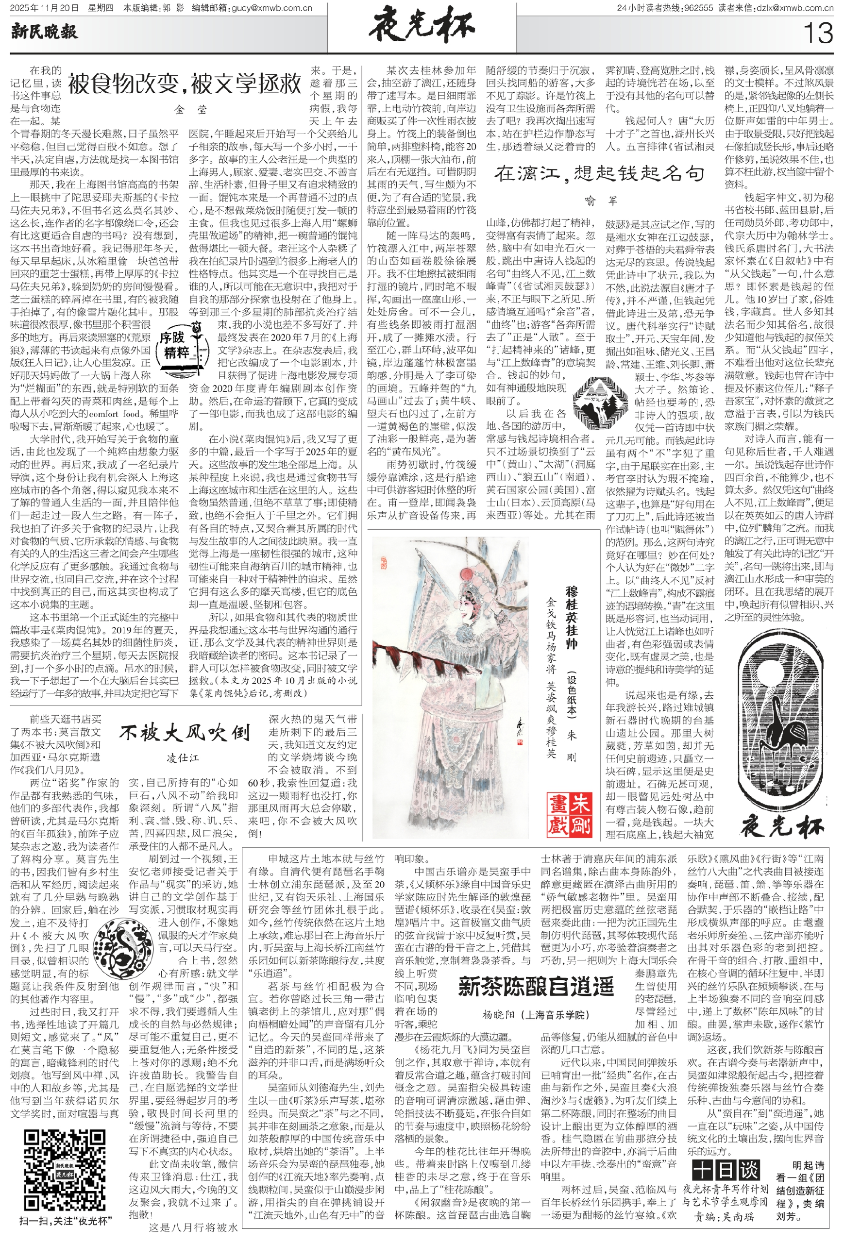 所以,如果食物和其代表的物质世界是我想通过这本书与世界沟通的通行证,那么文学及其代表的精神世界则是我暗藏给读者的密码。这本书记录了一群人可以怎样被食物改变,同时被文学拯救。(本文为2025年10月出版的小说集《菜肉馄饨》后记,有删改)