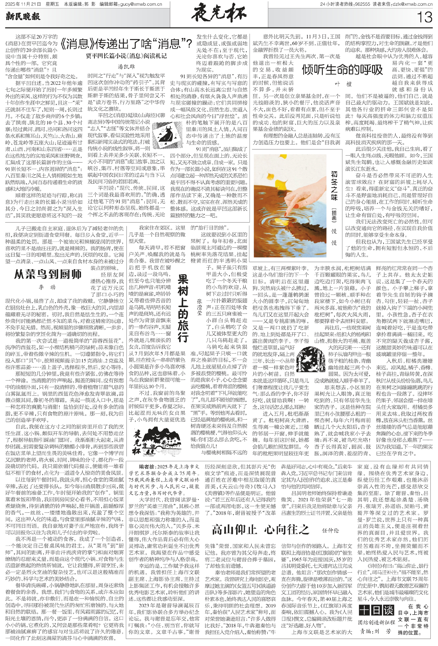 91则长短各异的“消息”,有历史与现实的碰撞,有写实与写意的合体;有山高水长远离尘世与自然相处的清静,有烟火袅袅人声鼎沸与现实碰撞的躁动;它们共同拼接成一幅风俗文化、自然生态、世道人心和社会风尚的今日“浮世绘”。质朴的笔触下展开的是八百里秦川的风土人情,人间百态中传递出了土地的温度与生命的质感。