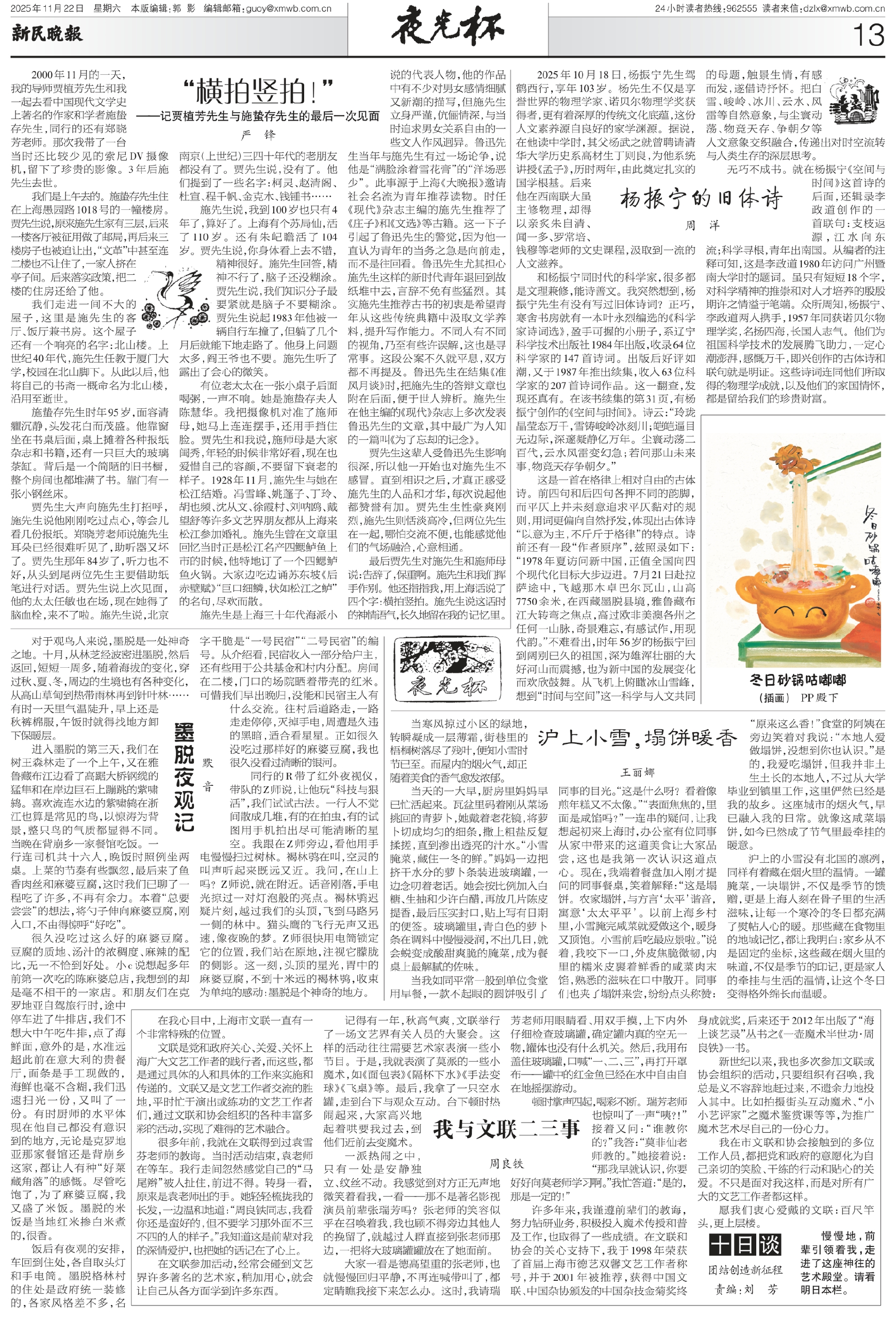最后贾先生对施先生和施师母说:告辞了,保重啊。施先生和我们挥手作别。他还指指我,用上海话说了四个字:横拍竖拍。施先生说这话时的神情语气,长久地留在我的记忆里。