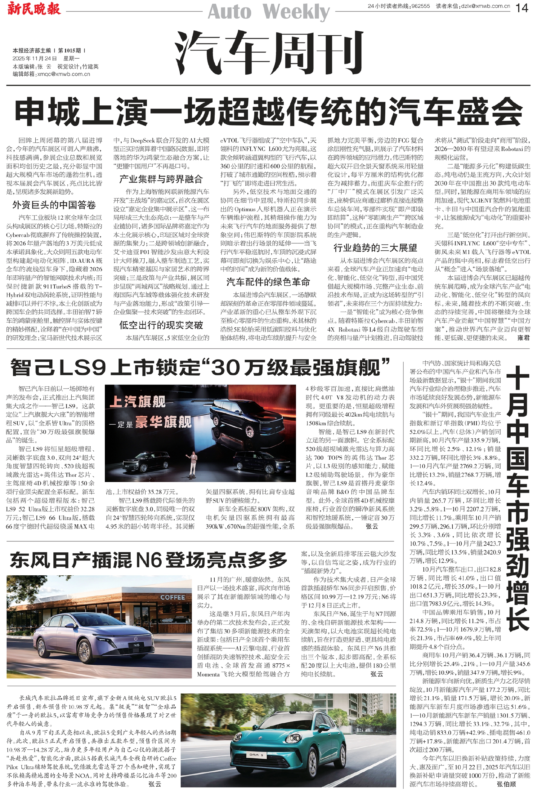 本届进博会汽车展区已超越传统车展范畴,成为全球汽车产业“电动化、智能化、低空化”转型的风向标。未来,随着技术的不断突破、生态的持续完善,中国将继续为全球汽车产业贡献“中国智慧”“中国方案”,推动世界汽车产业迈向更智能、更低碳、更便捷的未来。 雍君