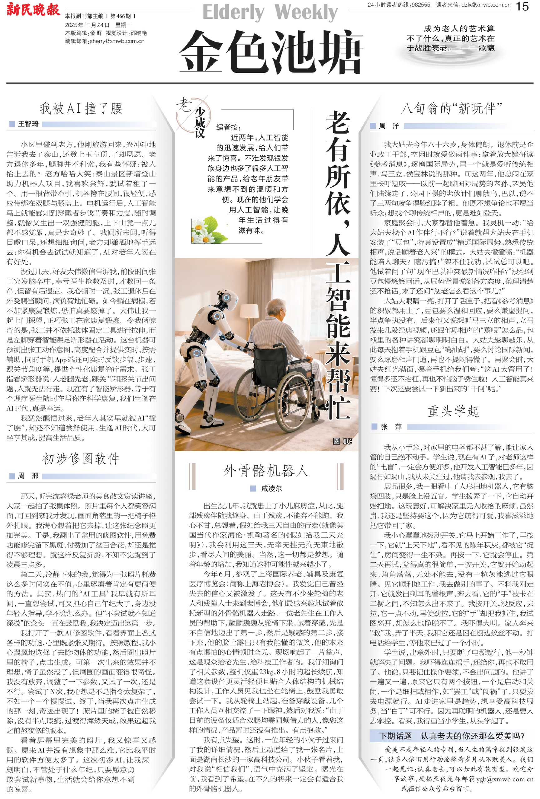 我猛然醒悟过来,老年人其实早就被AI“撞了腰”,却还不知道尝鲜使用,生逢AI时代,大可坐享其成,提高生活品质。