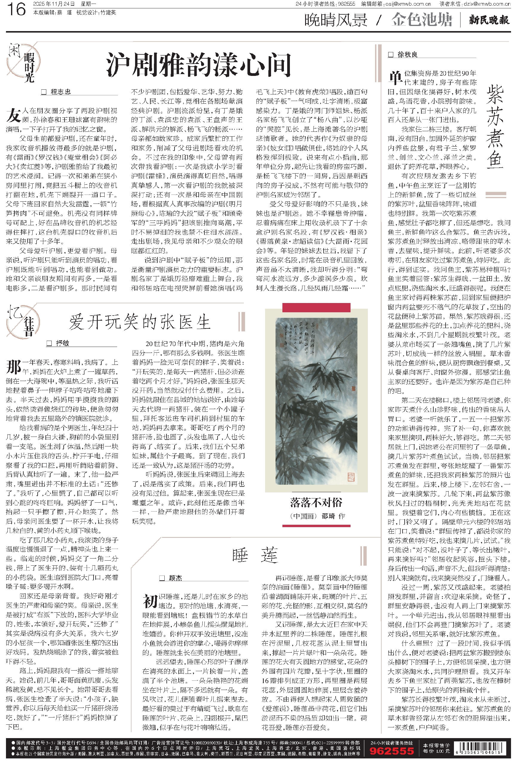 父母爱听沪剧,更爱看沪剧。母亲说,听沪剧只能听到演员的唱功,看沪剧既能听到唱功,也能看到做功。她和父亲谈朋友期间有两多,一是看电影多,二是看沪剧多。那时民间有不少沪剧团,包括爱华、艺华、努力、勤艺、人民、长江等,竞相在各剧场献演经典沪剧。沪剧流派纷呈,有丁是娥的丁派、袁滨忠的袁派、王盘声的王派、解洪元的解派、杨飞飞的杨派……母亲都如数家珍。成家后繁忙的工作和家务,削减了父母进剧场看戏的机会。不过在我的印象中,父母曾有两次带我看沪剧:一次是我读小学时看沪剧《雷锋》,演员演得真切自然,唱得真挚感人,第一次看沪剧的我就被深深打动;还有一次是和母亲在中国剧场,看根据真人真事改编的沪剧《明月照母心》,陈瑜的大段“赋子板”和顾奇军的“三呼妈妈”把该剧推向高潮,平时不易掉泪的我也禁不住泪水涟涟。走出剧场,我见母亲和不少观众的眼眶都红红的。
