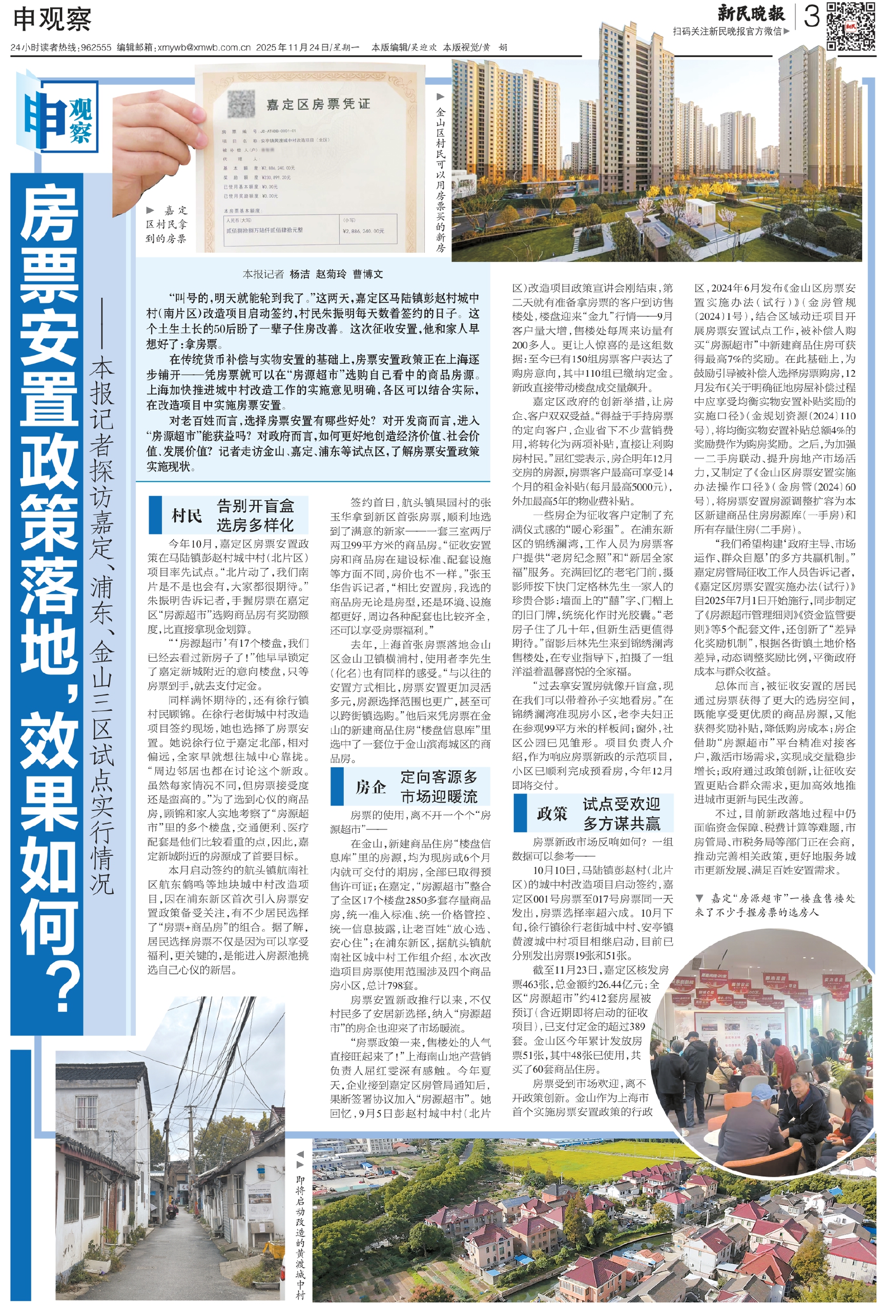 对老百姓而言,选择房票安置有哪些好处?对开发商而言,进入“房源超市”能获益吗?对政府而言,如何更好地创造经济价值、社会价值、发展价值?记者走访金山、嘉定、浦东等试点区,了解房票安置政策实施现状。