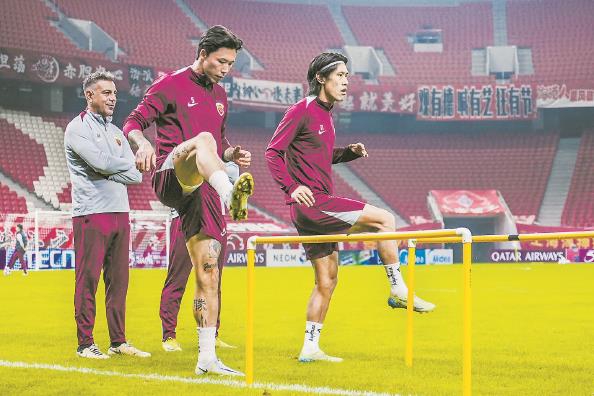 海港队在浦东足球场进行赛前训练
