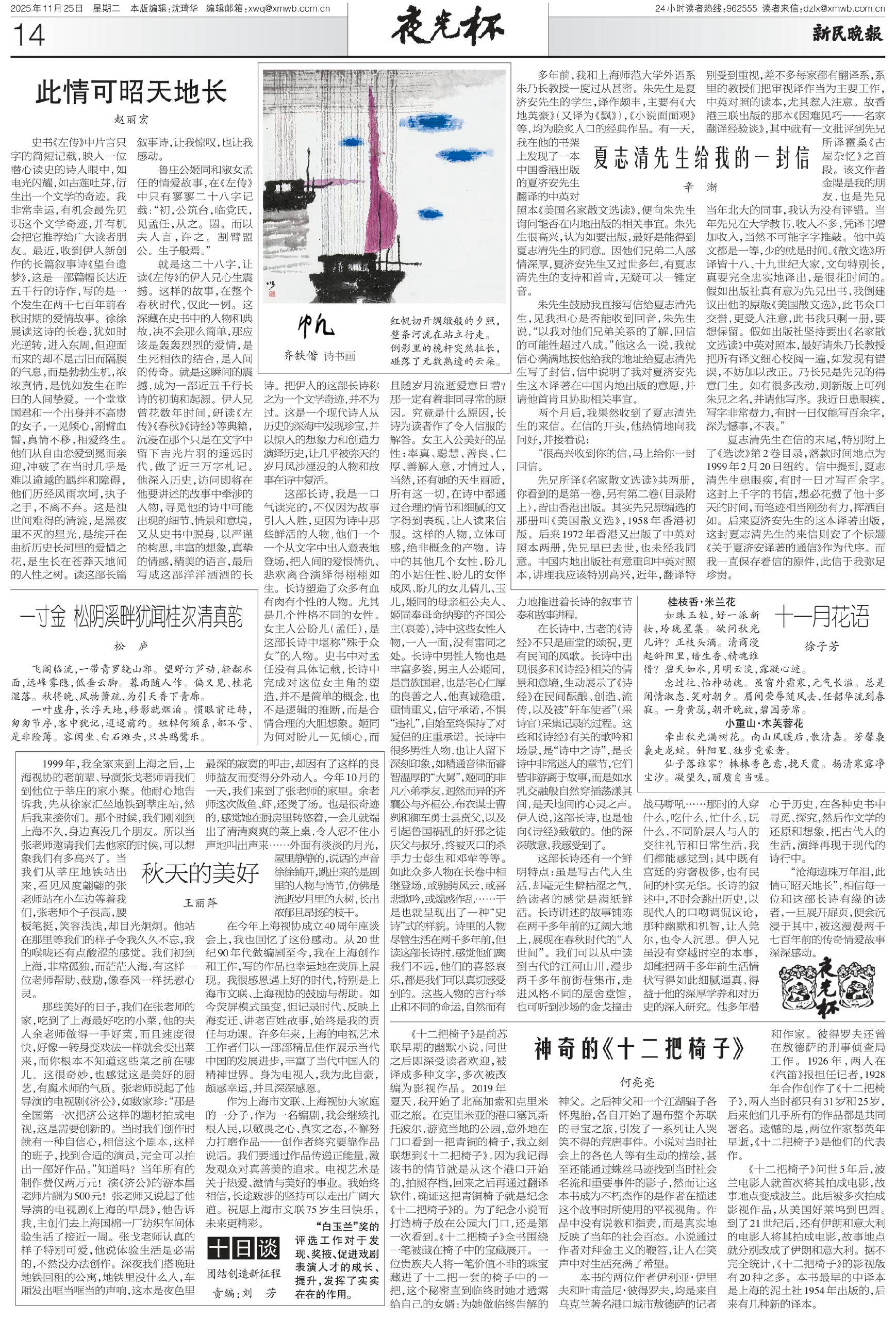 就是这二十八字,让读《左传》的伊人兄心生震撼。这样的故事,在整个春秋时代,仅此一例。这深藏在史书中的人物和典故,决不会那么简单,那应该是轰轰烈烈的爱情,是生死相依的结合,是人间的传奇。就是这瞬间的震撼,成为一部近五千行长诗的初萌和起源。伊人兄曾花数年时间,研读《左传》《春秋》《诗经》等典籍,沉浸在那个只是在文字中留下吉光片羽的遥远时代,做了近三万字札记。他深入历史,访问即将在他要讲述的故事中牵涉的人物,寻觅他的诗中可能出现的细节、情景和意境,又从史书中脱身,以严谨的构思,丰富的想象,真挚的情感,精美的语言,最后写成这部洋洋洒洒的长诗。把伊人的这部长诗称之为一个文学奇迹,并不为过。这是一个现代诗人从历史的深海中发现珍宝,并以惊人的想象力和创造力演绎历史,让几乎被弥天的岁月风沙湮没的人物和故事在诗中复活。