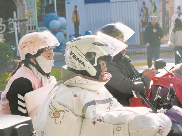 ② 骑车市民捂得严严实实 本报记者 刘歆 摄