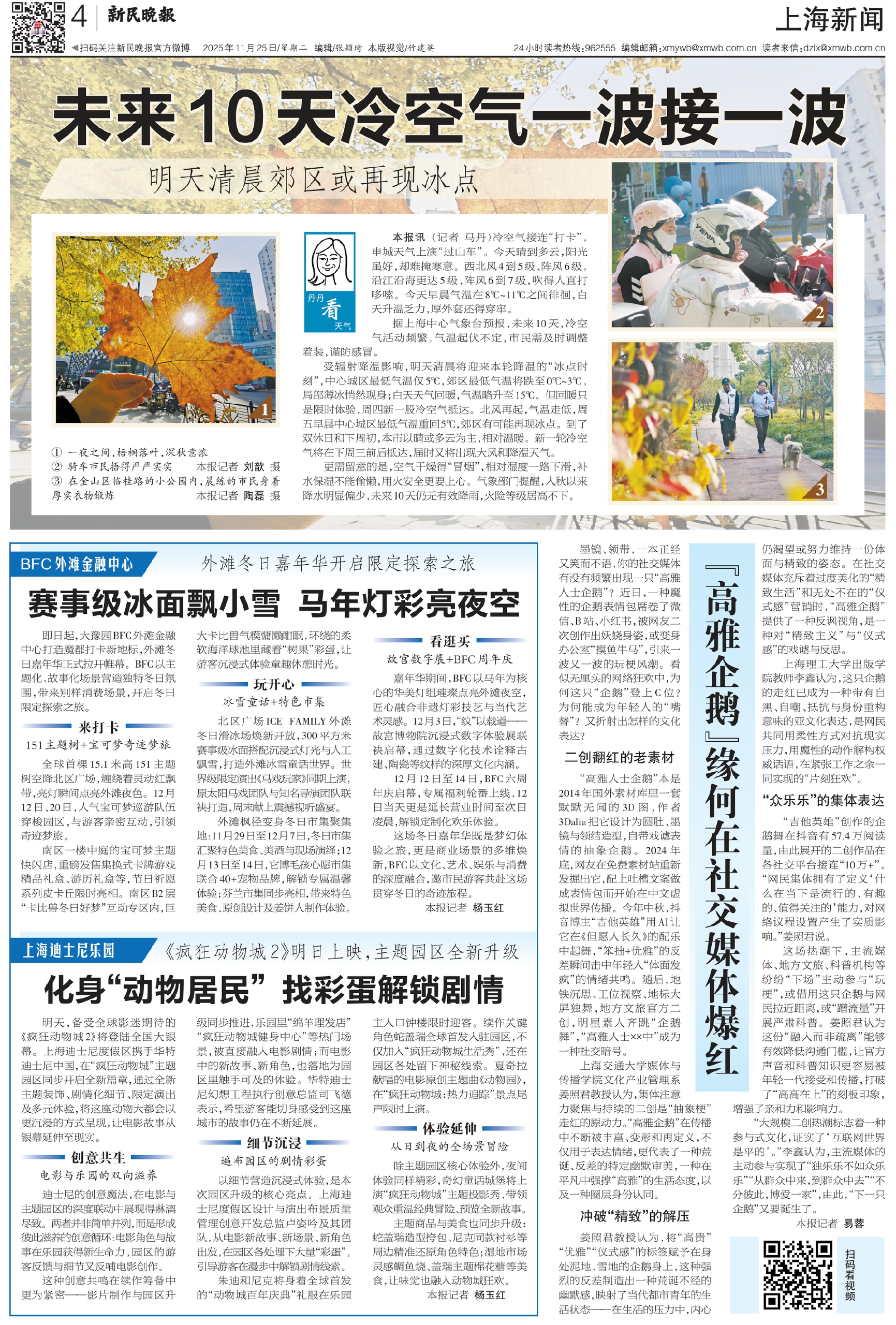 本报讯(记者 马丹)冷空气接连“打卡”,申城天气上演“过山车”。今天晴到多云,阳光虽好,却难掩寒意。西北风4到5级、阵风6级,沿江沿海更达5级、阵风6到7级,吹得人直打哆嗦。今天早晨气温在8℃~11℃之间徘徊,白天升温乏力,厚外套还得穿牢。