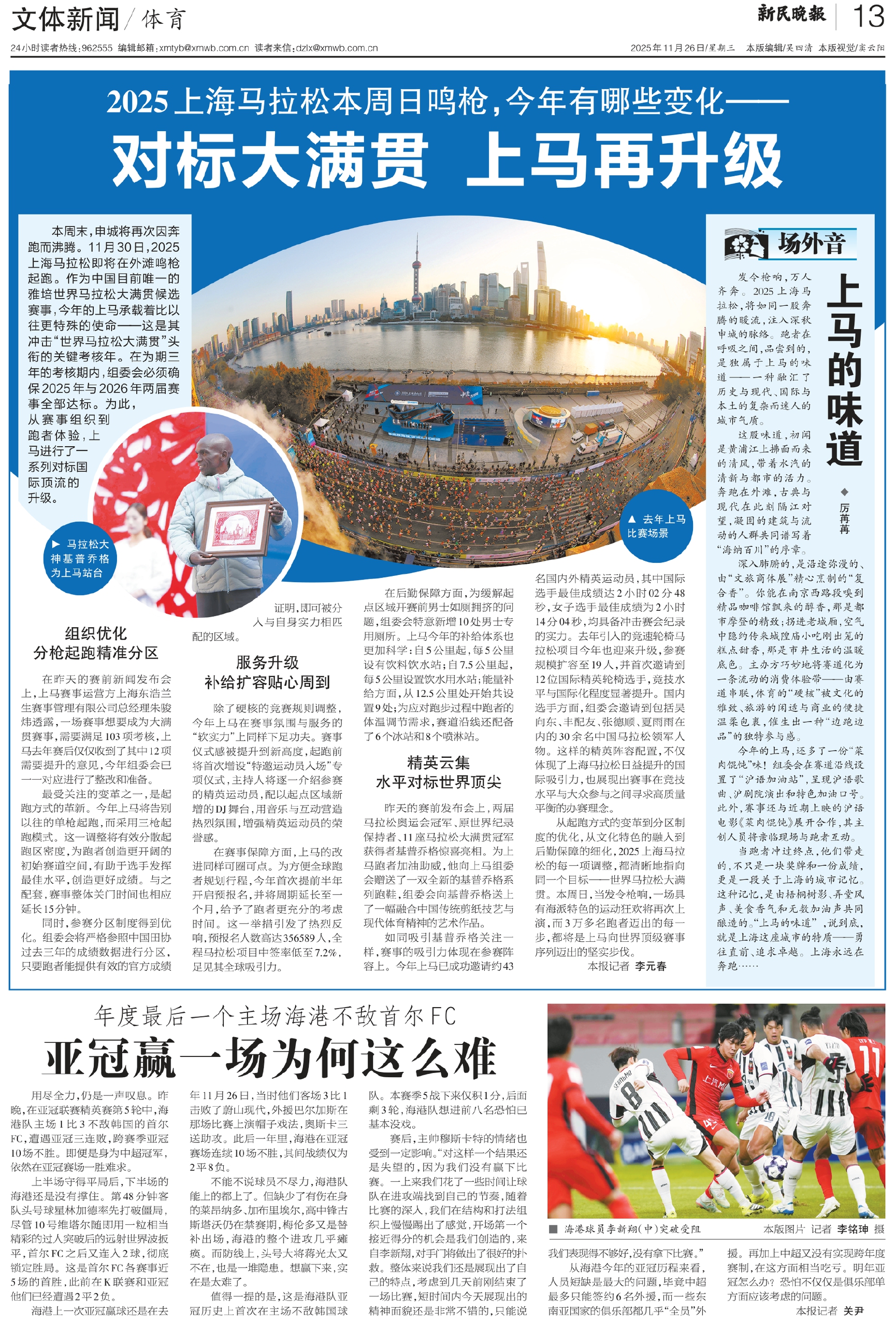 在昨天的赛前新闻发布会上,上马赛事运营方上海东浩兰生赛事管理有限公司总经理朱骏炜透露,一场赛事想要成为大满贯赛事,需要满足103项考核,上马去年赛后仅仅收到了其中12项需要提升的意见,今年组委会已一一对应进行了整改和准备。