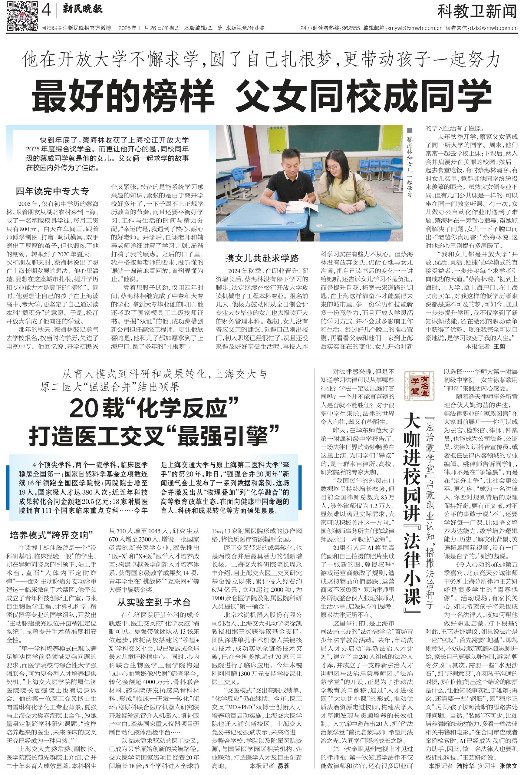 快到年底了,蔡海林收获了上海松江开放大学2025年度综合奖学金。而更让他开心的是,同校同年级的蔡威同学就是他的女儿。父女俩一起求学的故事在校园内外传为了佳话。