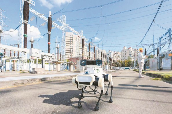 国网上海电力应用智能巡检机器狗在变电站开展户外设备巡视