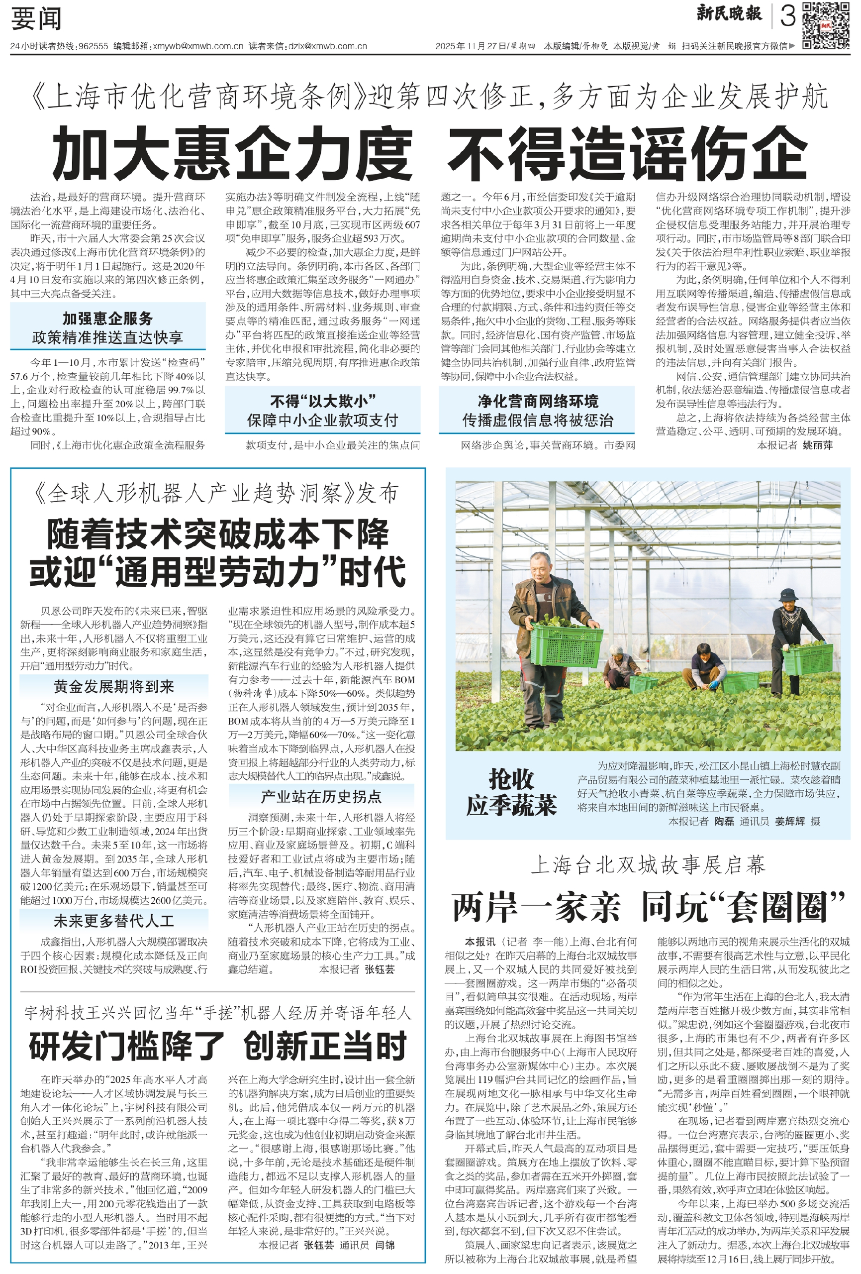昨天,市十六届人大常委会第25次会议表决通过修改《上海市优化营商环境条例》的决定,将于明年1月1日起施行。这是2020年4月10日发布实施以来的第四次修正条例,其中三大亮点备受关注。