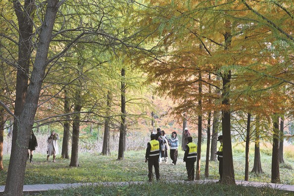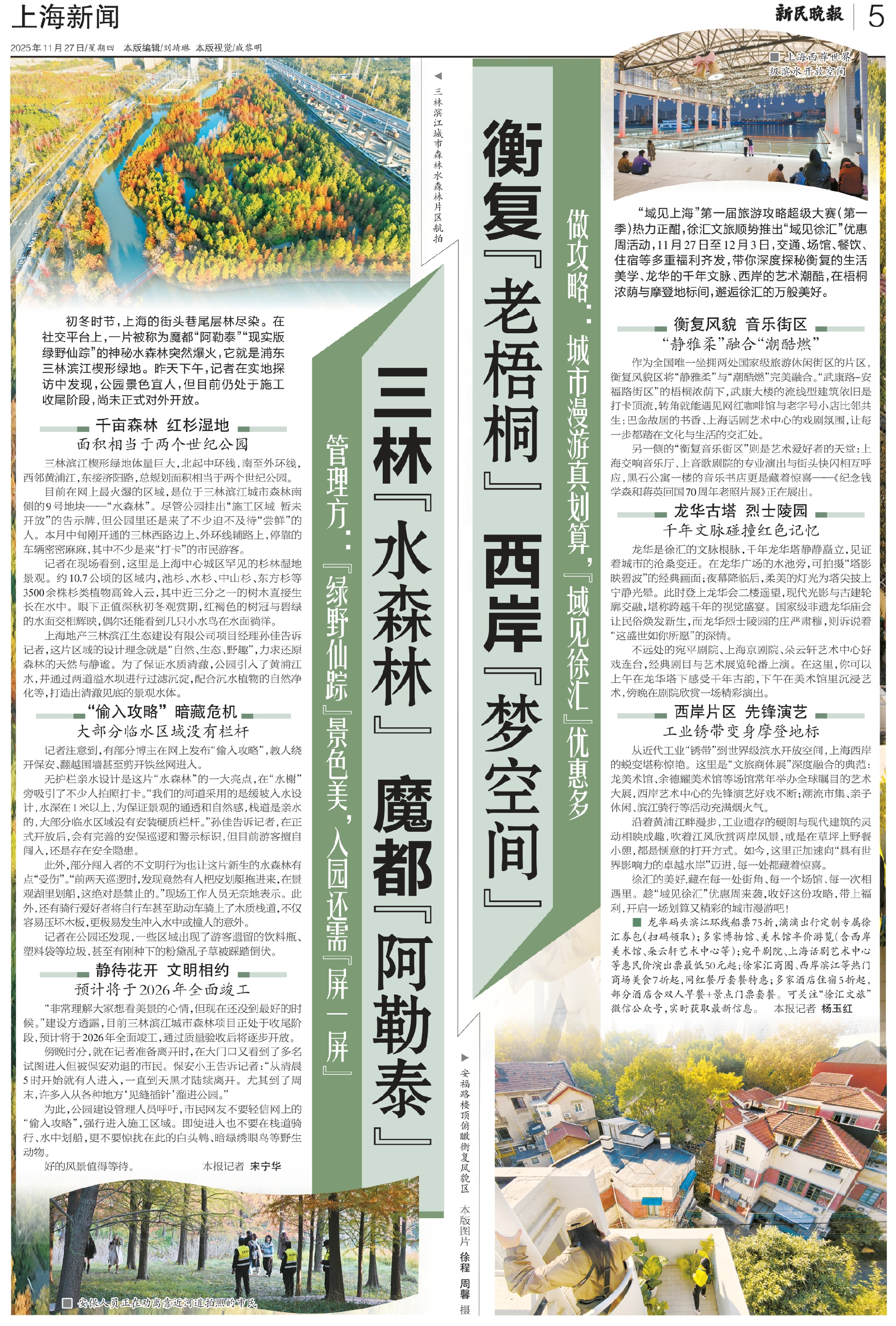 初冬时节,上海的街头巷尾层林尽染。在社交平台上,一片被称为魔都“阿勒泰”“现实版绿野仙踪”的神秘水森林突然爆火,它就是浦东三林滨江楔形绿地。昨天下午,记者在实地探访中发现,公园景色宜人,但目前仍处于施工收尾阶段,尚未正式对外开放。
