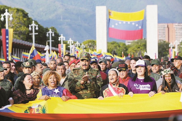 委内瑞拉总统马杜罗(中)参加反美游行 图IC