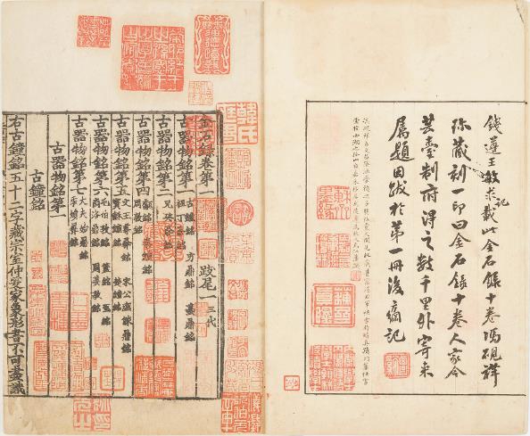 展览中的有些最珍贵的宋本并非首次亮相,但因为增加了文献这个维度,将珍本与关联文献组合展出,为观众提供了新的视角。如著名的十卷本《金石录》。《金石录》凡三十卷,上图藏本为南宋龙舒郡斋刻本,存卷十一至二十,书贾剜改卷数为卷一至十,假充一个完整的本子。这个残本曾经朱大韶、冯子玄、冯文昌、鲍廷博、江立、赵魏、阮元、韩泰华、潘祖荫递相收藏,又有江藩、顾千里、翁方纲、姚元之、洪颐煊、沈涛、西林春等众多名流题跋、题咏,收藏印记竟达三百枚之多。其中,那方由“十卷本”第三位藏家冯文昌始刻,后继一代又一代递藏此书的鲍廷博、江立、阮元、韩泰华直到潘祖荫都亦步亦趋加以复刻的“金石录十卷人家”印,被视为“藏书史上的身份图腾”。当年阮元在得到这部书后,寄给翁方纲赏鉴,翁氏摩挲累月,不但为之题跋,还写下了《重镌金石录十卷印歌》。本次展览与宋版《金石录》一起展出的手卷,就是翁方纲寄给阮元的诗柬与手札,是这段藏书史上有名的故事的见证。