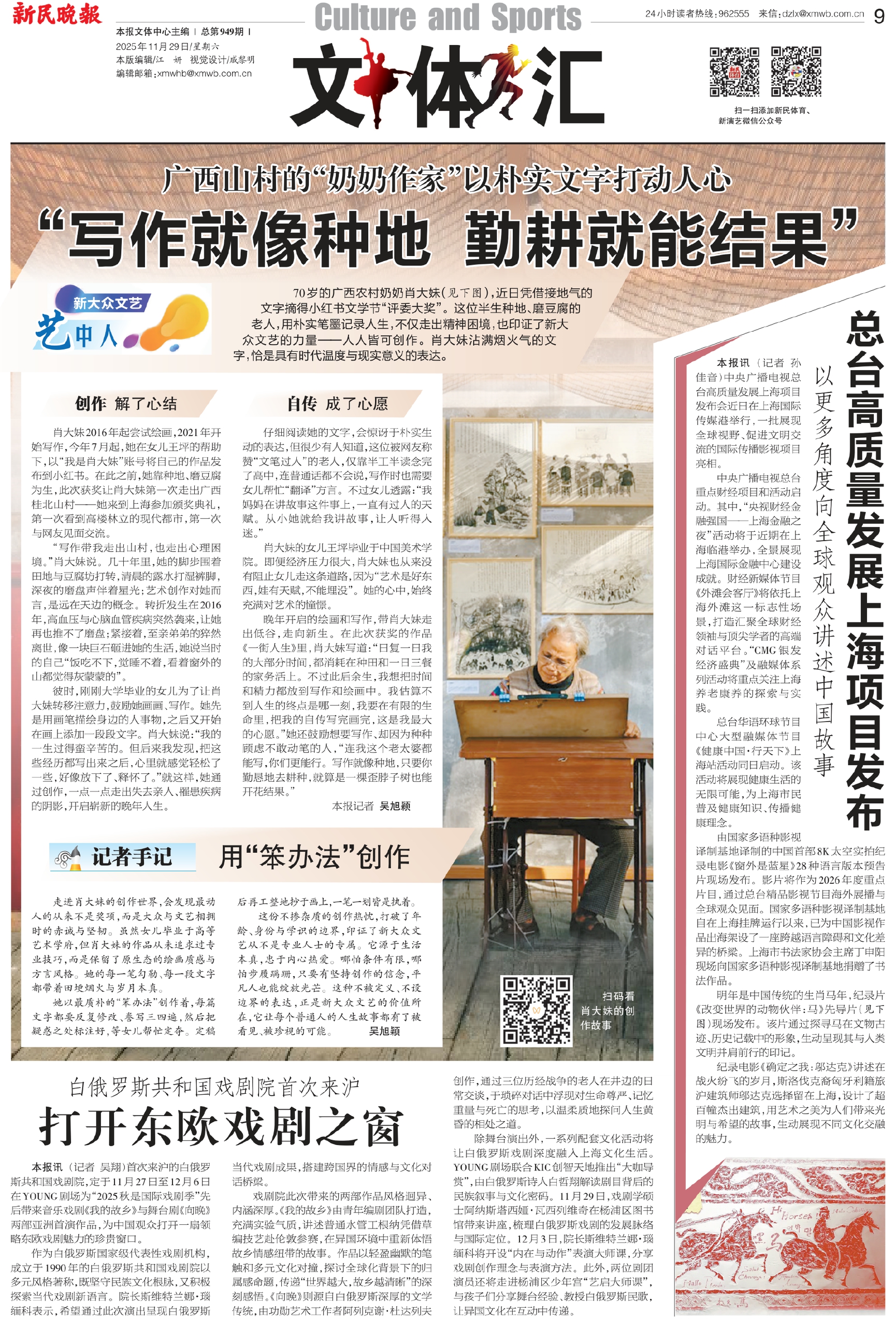 70岁的广西农村奶奶肖大妹(见下图),近日凭借接地气的文字摘得小红书文学节“评委大奖”。这位半生种地、磨豆腐的老人,用朴实笔墨记录人生,不仅走出精神困境,也印证了新大众文艺的力量——人人皆可创作。肖大妹沾满烟火气的文字,恰是具有时代温度与现实意义的表达。
