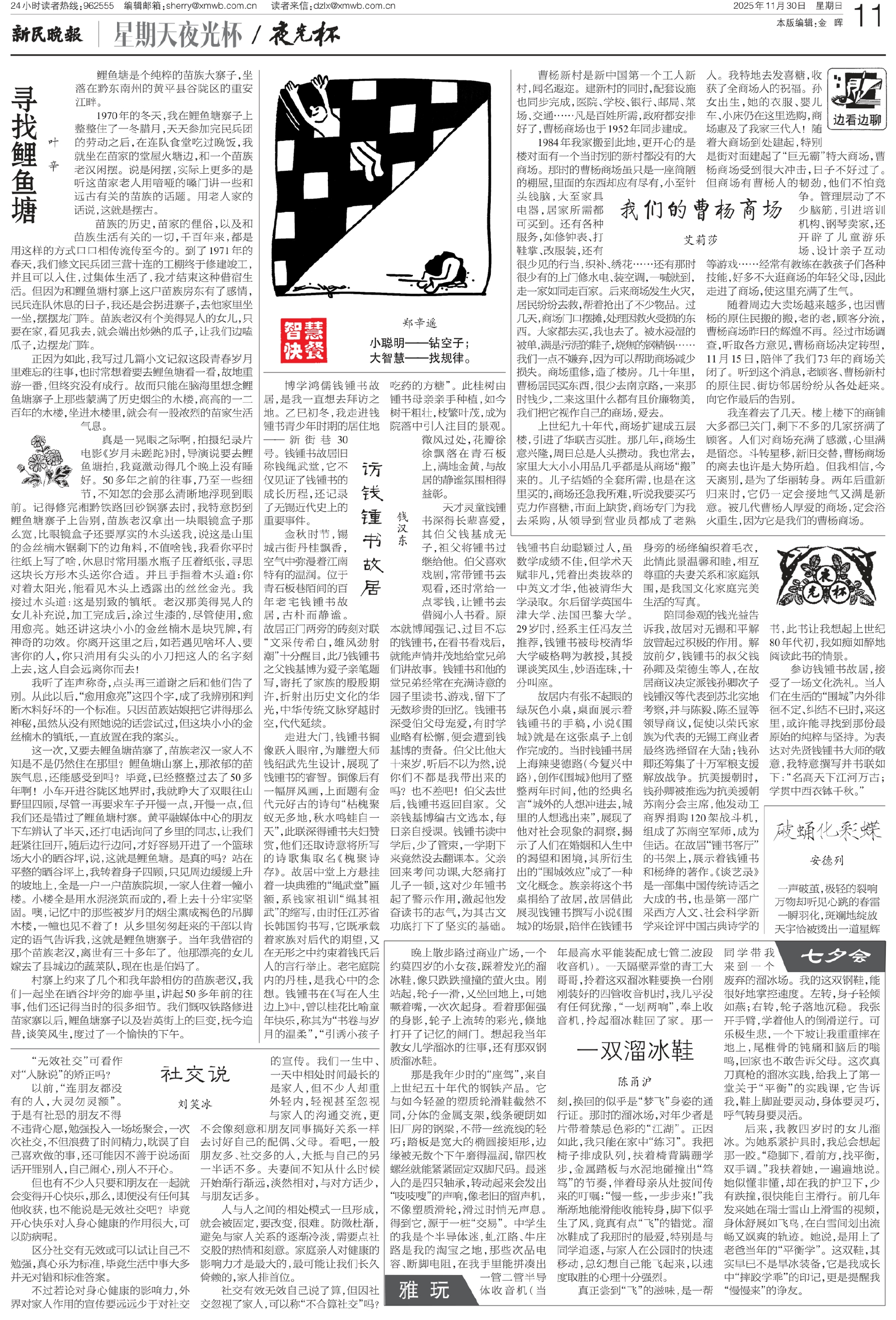 真是一晃眼之际啊,拍摄纪录片电影《岁月未蹉跎》时,导演说要去鲤鱼塘拍,我竟激动得几个晚上没有睡好。50多年之前的往事,乃至一些细节,不知怎的会那么清晰地浮现到眼前。记得修完湘黔铁路回砂锅寨去时,我特意拐到鲤鱼塘寨子上告别,苗族老汉拿出一块眼镜盒子那么宽,比眼镜盒子还要厚实的木头送我,说这是山里的金丝楠木锯剩下的边角料,不值啥钱,我看你平时往纸上写了啥,休息时常用墨水瓶子压着纸张,寻思这块长方形木头送你合适。并且手指着木头道:你对着太阳光,能看见木头上透露出的丝丝金光。我接过木头道:这是别致的镇纸。老汉那美得晃人的女儿补充说,加工完成后,涂过生漆的,尽管使用,愈用愈亮。她还讲这块小小的金丝楠木是块咒牌,有神奇的功效。你离开这里之后,如若遇见啥坏人、要害你的人,你只消用有尖头的小刀把这人的名字刻上去,这人自会远离你而去!