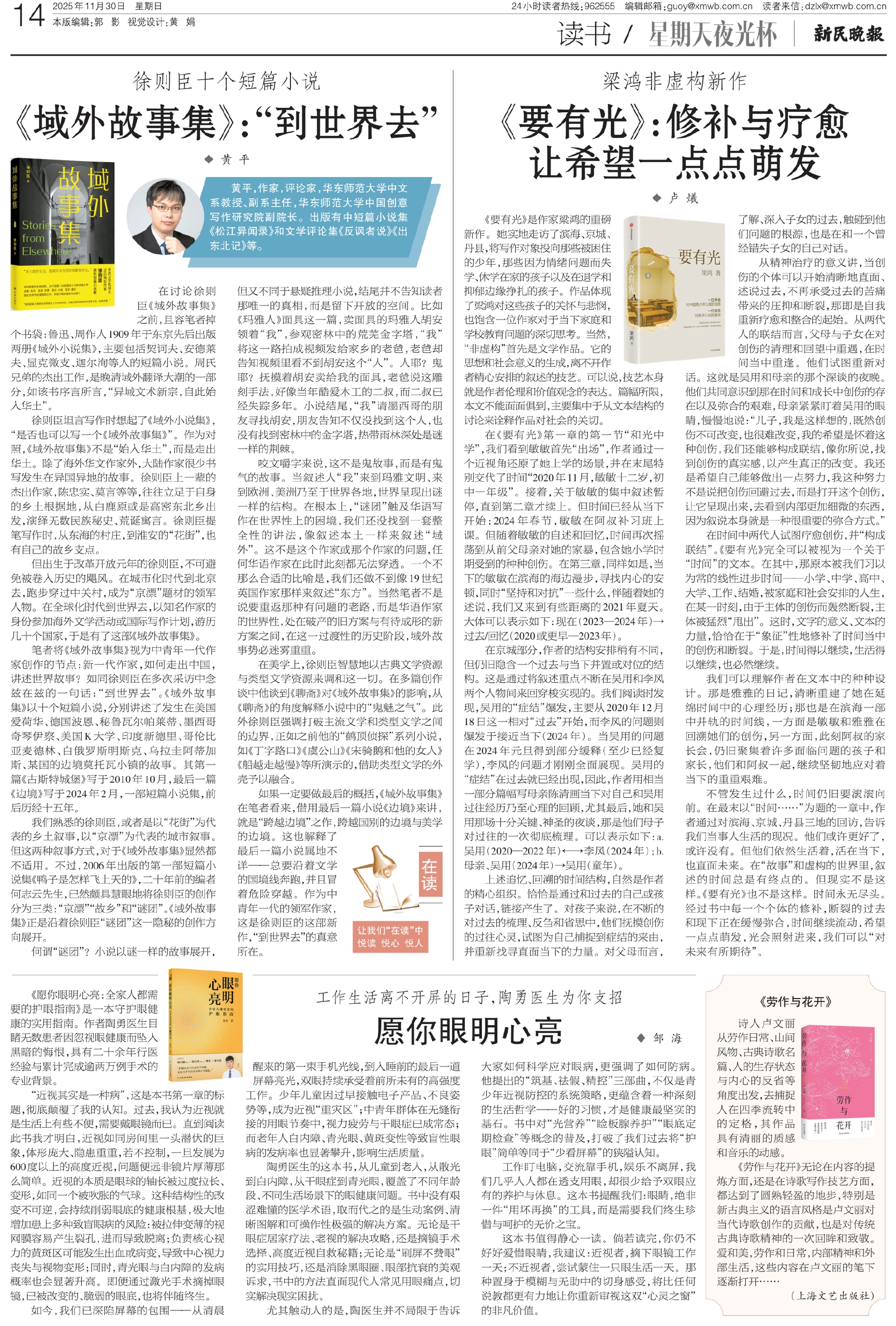 如果一定要做最后的概括,《域外故事集》在笔者看来,借用最后一篇小说《边境》来讲,就是“跨越边境”之作,跨越国别的边境与美学的边境。这也解释了最后一篇小说属地不详——总要沿着文学的国境线奔跑,并且冒着危险穿越。作为中青年一代的领军作家,这是徐则臣的这部新作,“到世界去”的真意所在。