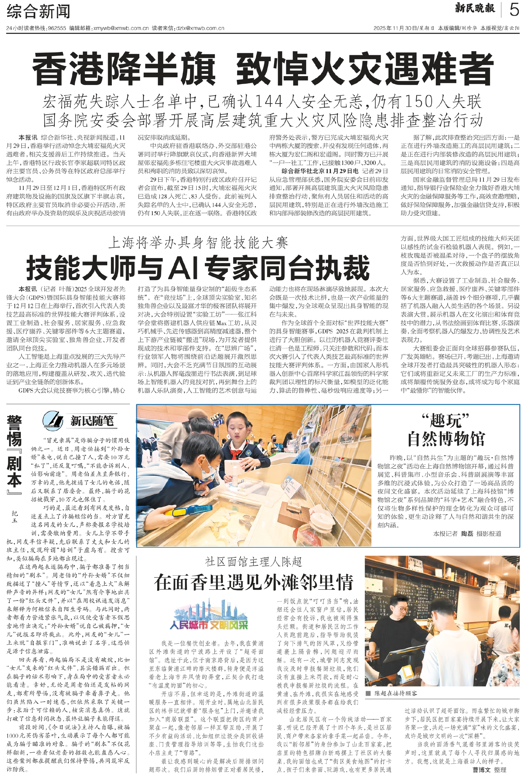 29日下午,香港特别行政区政府召开记者会宣布,截至29日15时,大埔宏福苑火灾已造成128人死亡、83人受伤。此前被列入失踪名单的人士中,已确认144人安全无恙,仍有150人失联,正在逐一联络。香港特区政府警务处表示,警方已完成大埔宏福苑火灾中两栋大厦的搜索,并没有发现任何遗体,两栋大厦为宏仁阁和宏道阁。同时警方已开展“一户一社工”工作,已接触1300户、3200人。