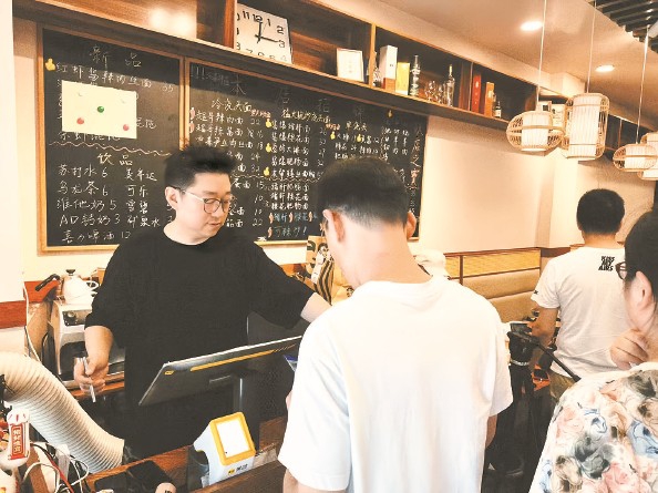 最让我感到暖心的是解决后厨排烟问题那次。我们后厨的排烟管正对着居民楼,一到饭点就“叮叮当当”响,油烟还会往人家窗户里钻,居民经常会有投诉,我也被闹得焦头烂额。街道和居民区的工作人员跑前跑后,指导帮助我装了向下排气的防风罩,又给管道裹上隔音棉,问题迎刃而解。还有一次,城管同志发现我没及时申报餐厨垃圾,他们没有直接上来罚款,而是耐心教我申报餐厨垃圾的流程。在黄浦、在外滩,我很实在地感受到有很多政策服务都在给我们减轻经营压力。