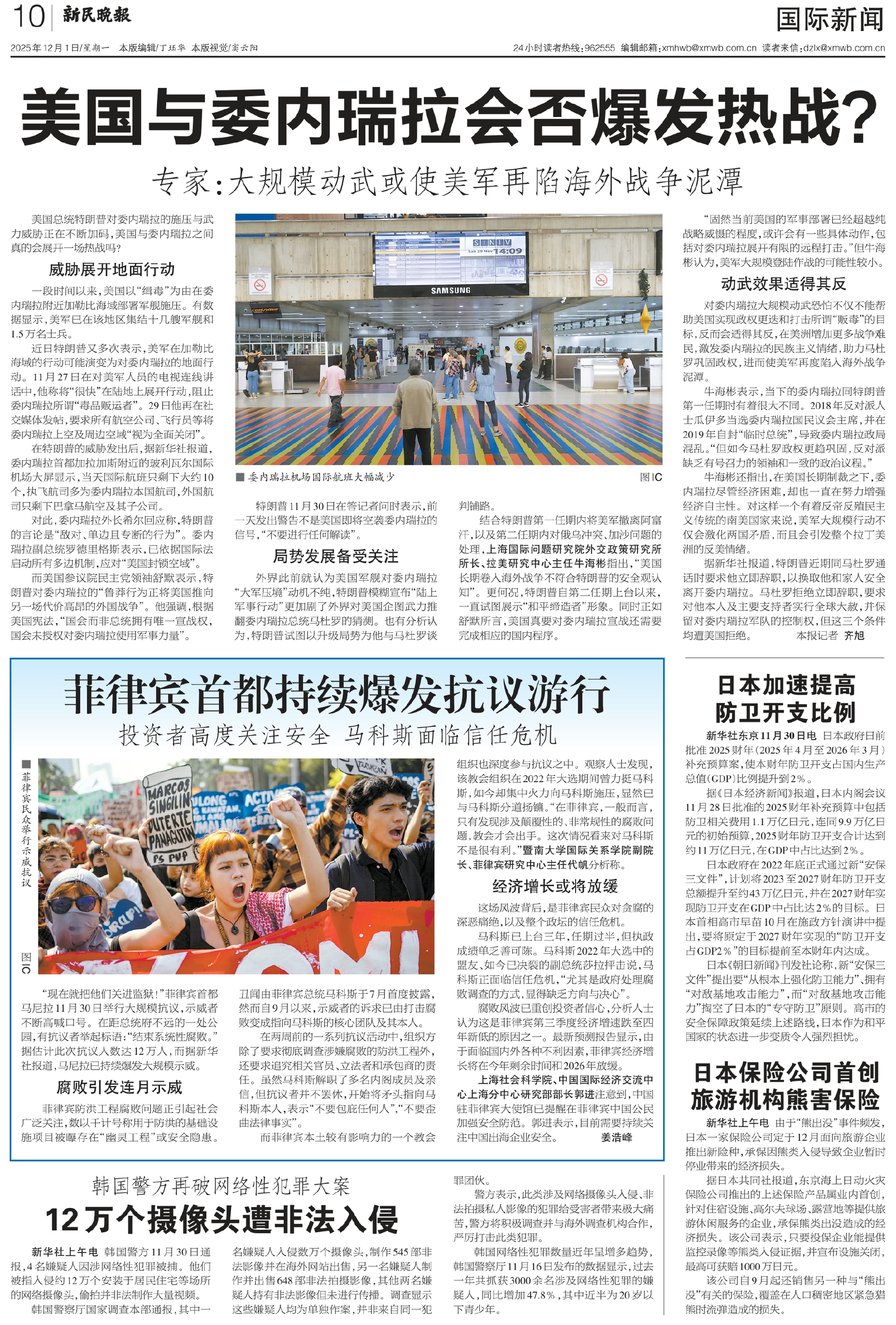 近日特朗普又多次表示,美军在加勒比海域的行动可能演变为对委内瑞拉的地面行动。11月27日在对美军人员的电视连线讲话中,他称将“很快”在陆地上展开行动,阻止委内瑞拉所谓“毒品贩运者”。29日他再在社交媒体发帖,要求所有航空公司、飞行员等将委内瑞拉上空及周边空域“视为全面关闭”。