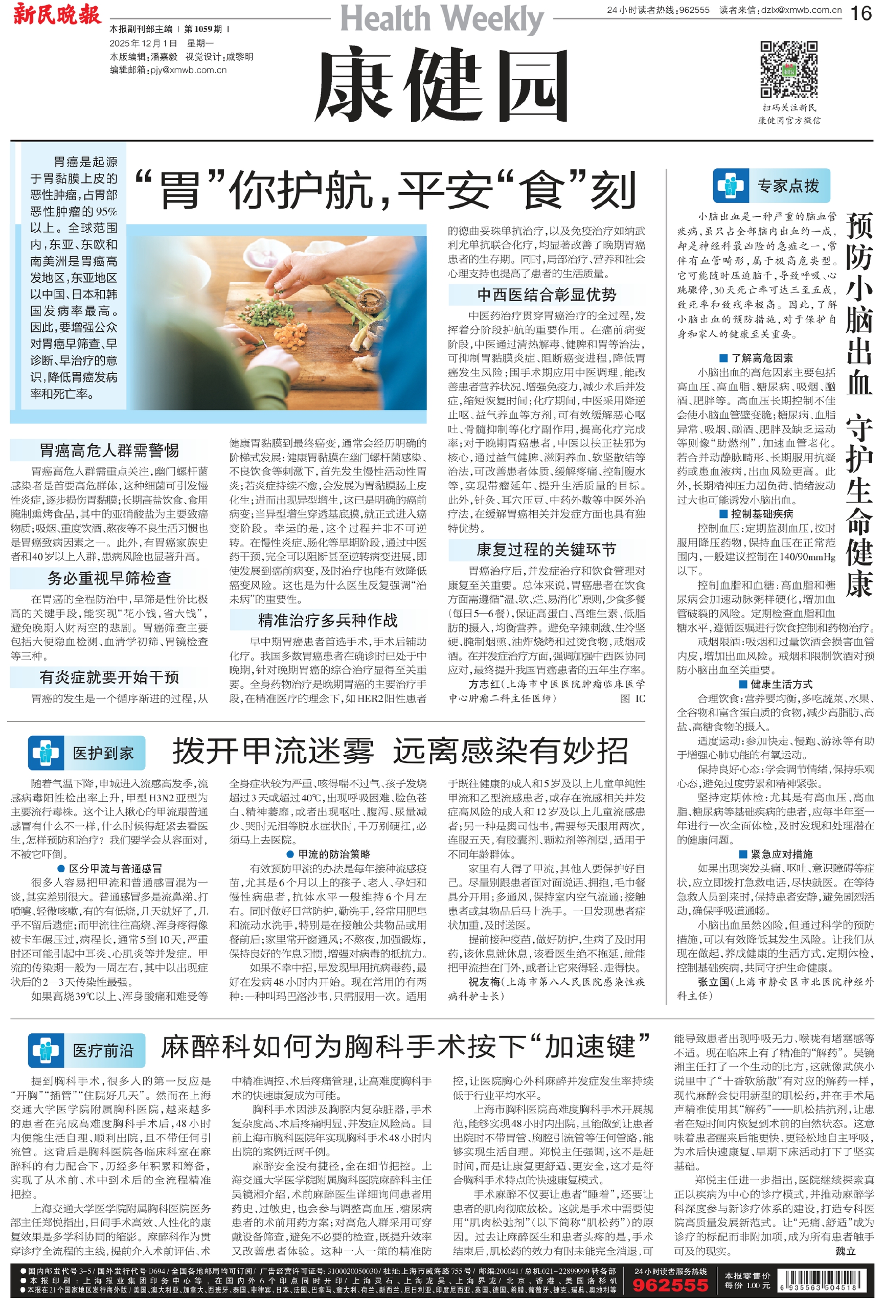 胃癌治疗后,并发症治疗和饮食管理对康复至关重要。总体来说,胃癌患者在饮食方面需遵循“温、软、烂、易消化”原则,少食多餐(每日5—6餐),保证高蛋白、高维生素、低脂肪的摄入,均衡营养。避免辛辣刺激、生冷坚硬、腌制烟熏、油炸烧烤和过烫食物,戒烟戒酒。在并发症治疗方面,强调加强中西医协同应对,最终提升我国胃癌患者的五年生存率。