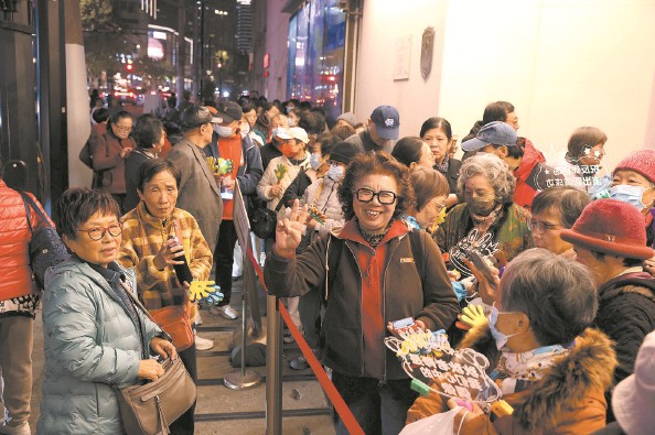 11月28日晚,美琪大戏院门口秋秋的粉丝们开心地等待入场观演 李茂君 摄