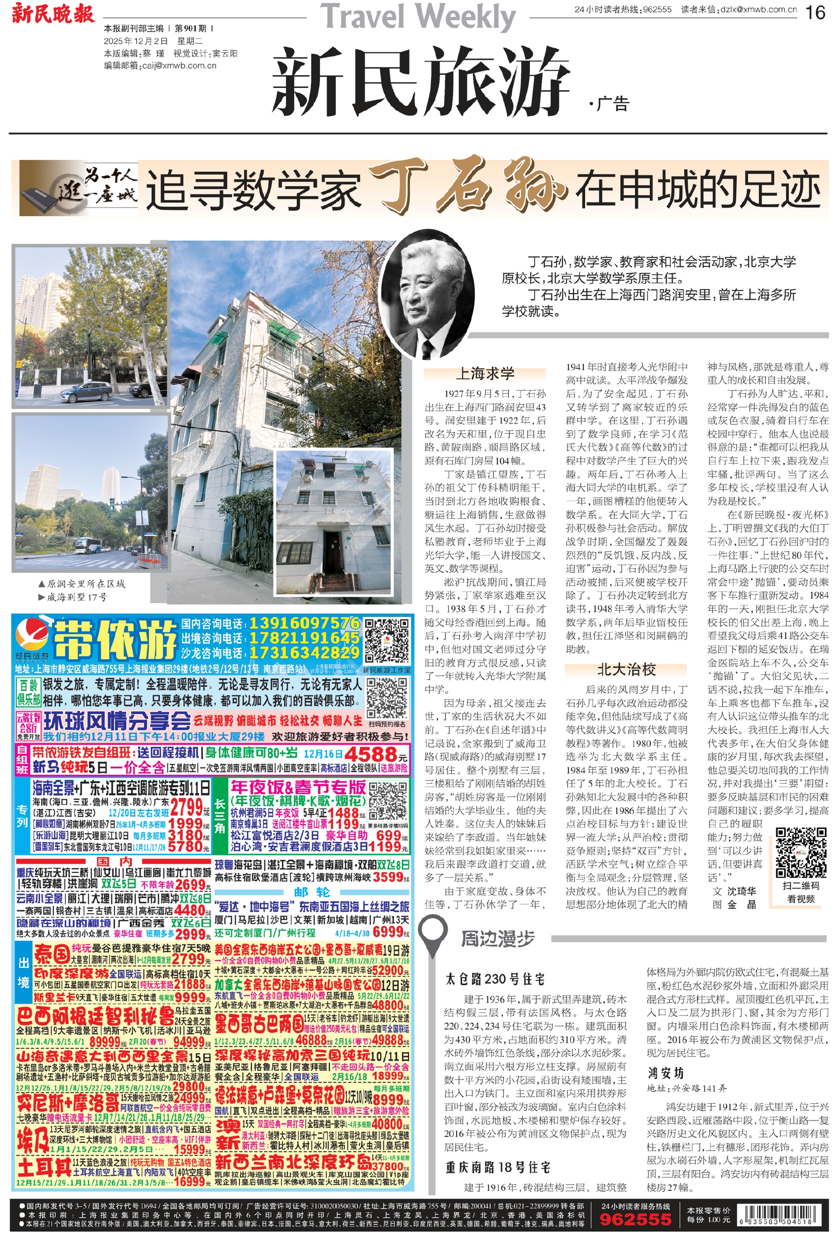 1927年9月5日,丁石孙出生在上海西门路润安里43号。润安里建于1922年,后改名为天和里,位于现自忠路、黄陂南路、顺昌路区域,原有石库门房屋104幢。
