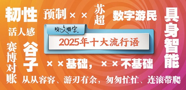 本报讯(记者 徐翌晟)“一年一盘点,一语一世界”,昨天,《咬文嚼字》“2025年十大流行语”发布,“韧性”位居榜首,“苏超”“赛博对账”也高票入选,这一年度的大事要事、社会热点,都在“流行语”中得到了体现。