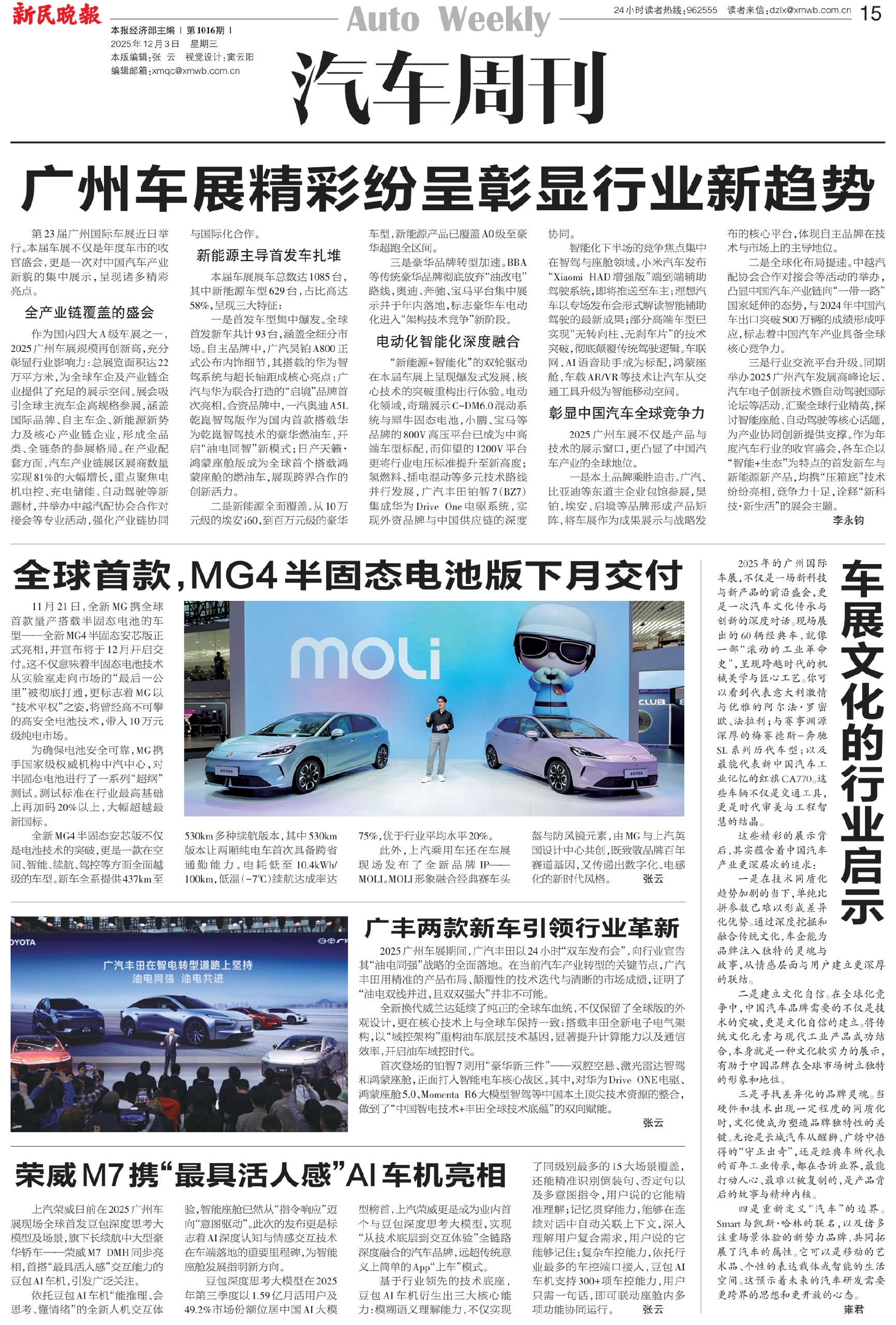 第23届广州国际车展近日举行。本届车展不仅是年度车市的收官盛会,更是一次对中国汽车产业新貌的集中展示,呈现诸多精彩亮点。