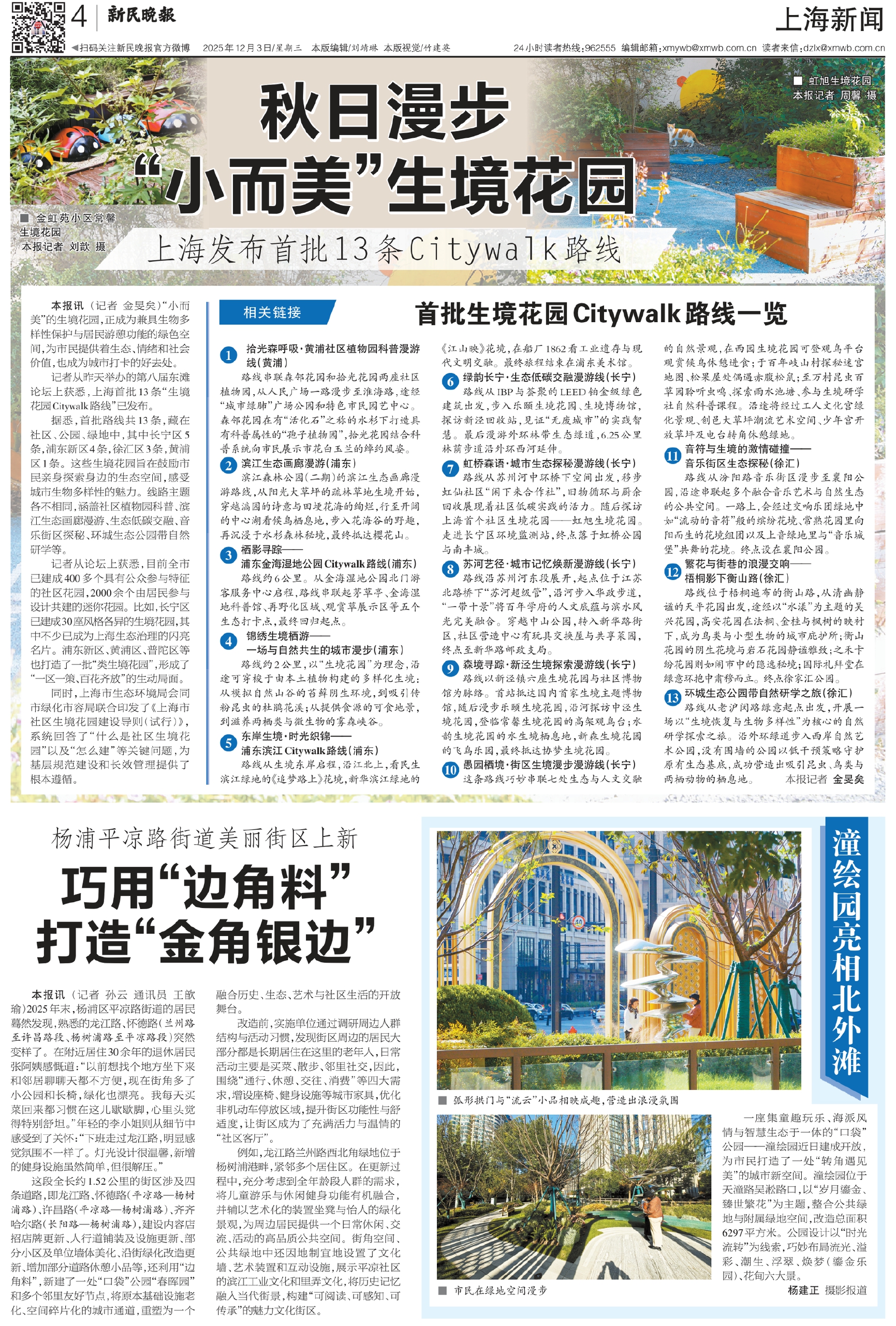记者从昨天举办的第八届东滩论坛上获悉,上海首批13条“生境花园Citywalk路线”已发布。