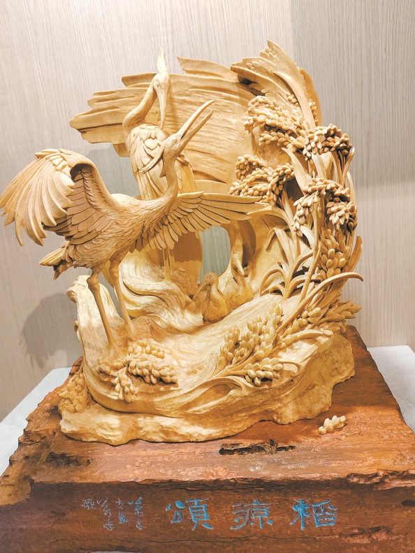 专程从浙江来沪参展的胡先民,今年获评“全国自强模范”称号。他回忆说,自己出生于木雕技艺发达的东阳市,下肢残疾的他从初中毕业后开始学艺,工作后,晚上仍通宵达旦地刻苦练习。2003年起,他开始参加各级技能竞赛,初期不熟悉比赛规则,压力巨大,屡屡受挫,但逐渐总结教训、检视不足、优化工具、日夜打磨技艺,终于脱颖而出。第一次参加国际残疾人职业技能竞赛便获得第四名,第二次参赛又获得银牌。如今,担任东阳市木雕家居产业协会副会长的他,致力于推动木雕产业化,还陆续培训残疾人近千人次,其中20余人已经崭露头角。站在自己的《稻源颂》作品前,他又自豪地介绍说,展架上还有一件柚木雕刻作品的作者正是他的徒弟。