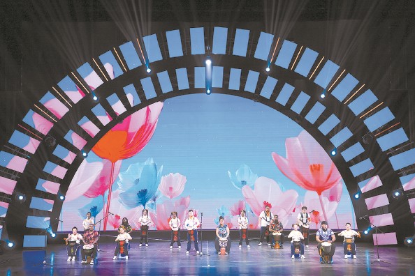 展演在上海市残疾人艺术团带来的打击乐《科技之光》中开幕。该作品是上海代表团在第11届全国残疾人艺术汇演中斩获特等类奖项的代表作。随后,红色组歌《山河在我心》缓缓唱响。诗朗诵《日出东方》则由北京奥运会“最美火炬手”金晶、残奥冠军王彦章与丁建华、刘家桢两位著名语言表演艺术家联袂登台。此外,浦东新区辅读学校学生与中非驿站友人同台演绎的非洲鼓《热情全世界》、上海歌剧院艺术家的双人舞《血映桃花》、浦东辅读学校家长与学生合唱团合唱的《亲爱的你啊》、盲人马成与著名钢琴演奏家孔祥东合作的《赛马》、荣获“群星奖”的音乐剧小品《无障“爱”》等节目,均饱含真挚情感,传递出多元维度的温暖力量。
