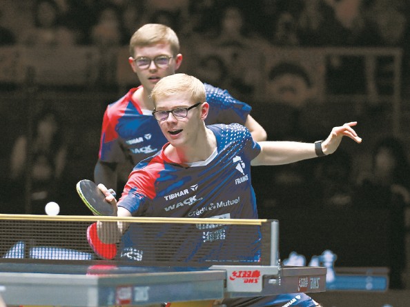 法国队组合艾利克斯·勒布伦/费利克斯·勒布伦(右)在男双比赛中 新华社 发