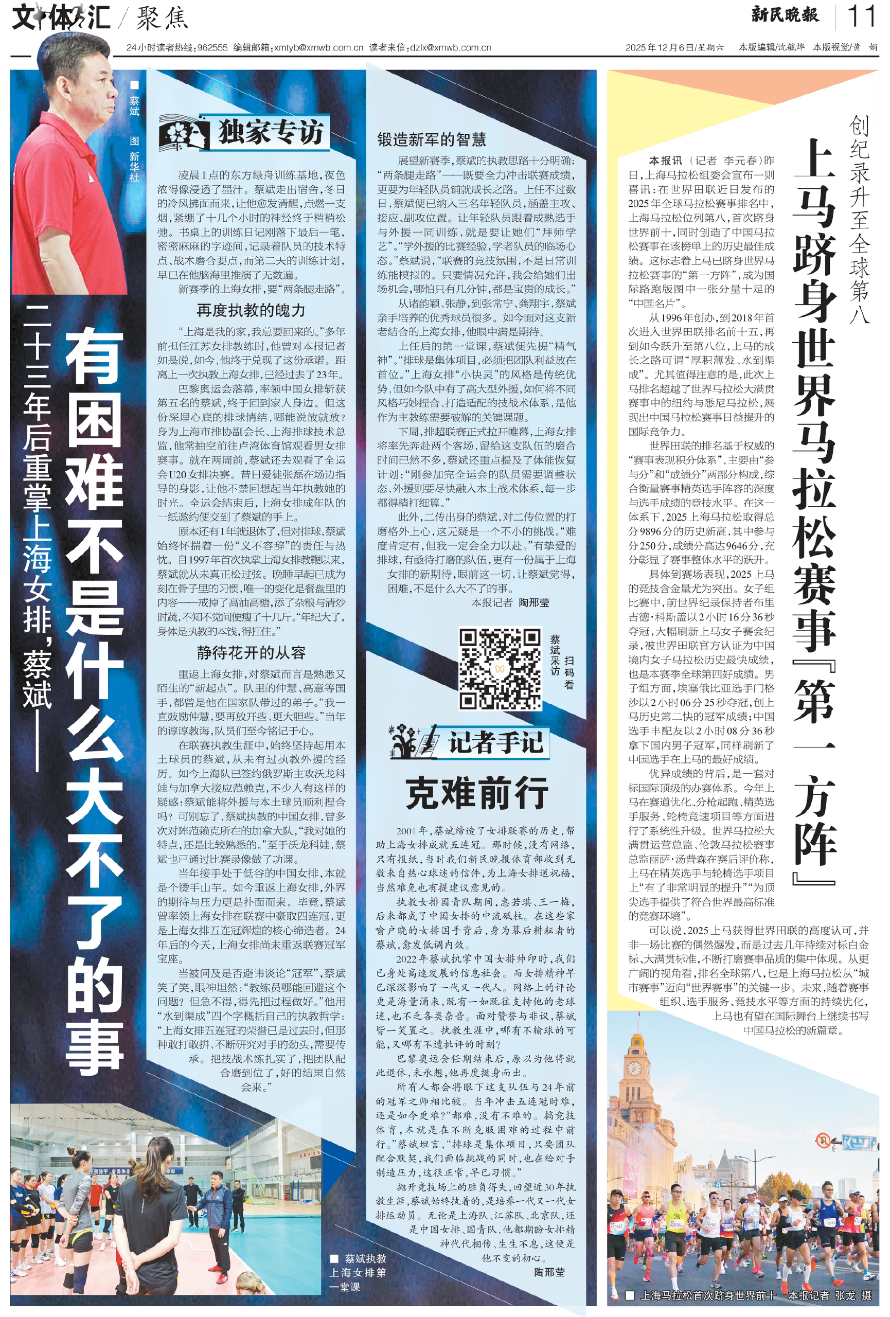 当被问及是否避讳谈论“冠军”,蔡斌笑了笑,眼神坦然:“教练员哪能回避这个问题?但急不得,得先把过程做好。”他用“水到渠成”四个字概括自己的执教哲学:“上海女排五连冠的荣誉已是过去时,但那种敢打敢拼、不断研究对手的劲头,需要传承。把技战术练扎实了,把团队配合磨到位了,好的结果自然会来。”