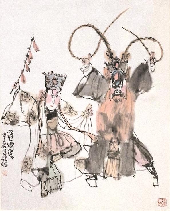 海派戏画艺术源远流长,20世纪早期,林风眠、关良、丁衍庸、叶浅予等艺术家在面临重新思考中国绘画时,都曾以戏曲人物画为切入点,逐渐形成了中国戏曲人物画独立的艺术样式。之后,更是吸引程十发、高马得、韩羽、丁立人、朱振庚、聂干因、张桂铭等众多名家醉心于以戏入画,这种转化不是简单复制,而是对戏曲精神的再诠释与再创造,对于中国画灵魂的深度认知与把握。