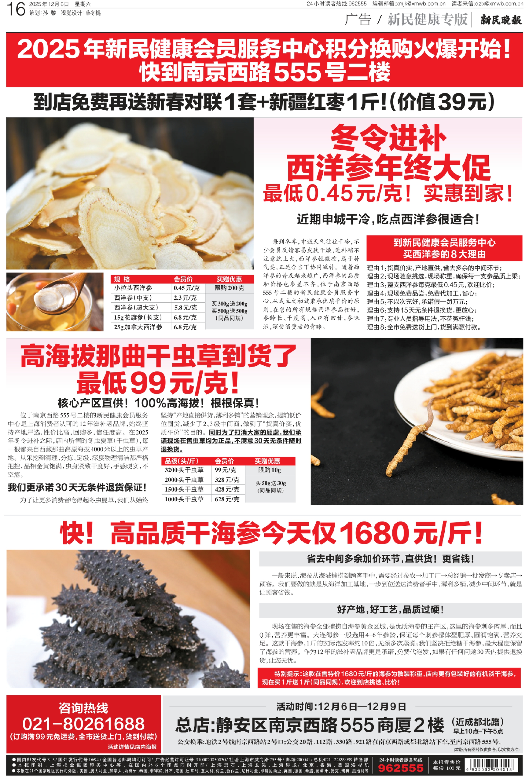 2025年新民健康会员服务中心积分换购火爆开始!快到南京西路555号二楼(专版)