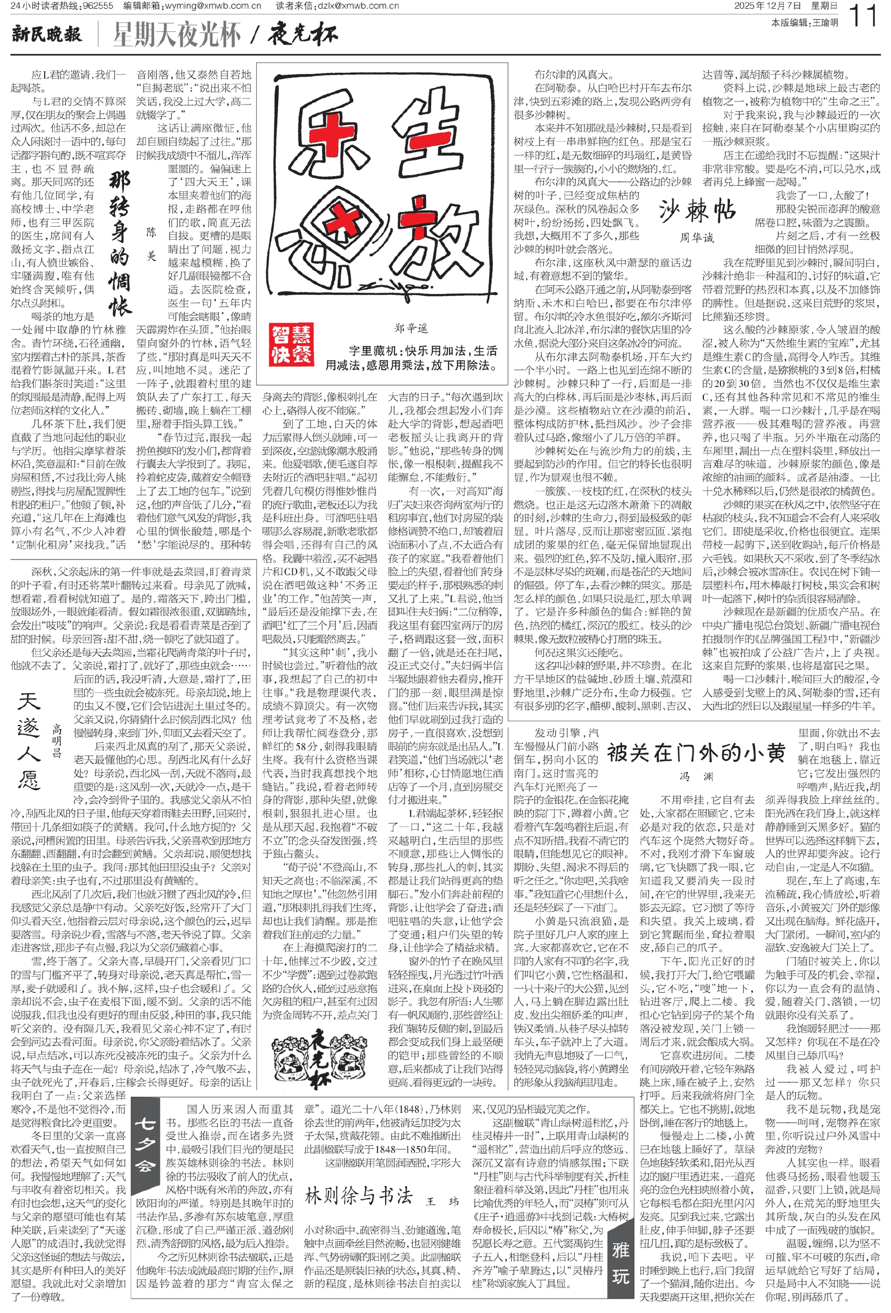 窗外的竹子在晚风里轻轻摇曳,月光透过竹叶洒进来,在桌面上投下斑驳的影子。我忽有所悟:人生哪有一帆风顺的,那些曾经让我们辗转反侧的刺,到最后都会变成我们身上最坚硬的铠甲;那些曾经的不顺意,后来都成了让我们站得更高、看得更远的一块砖。