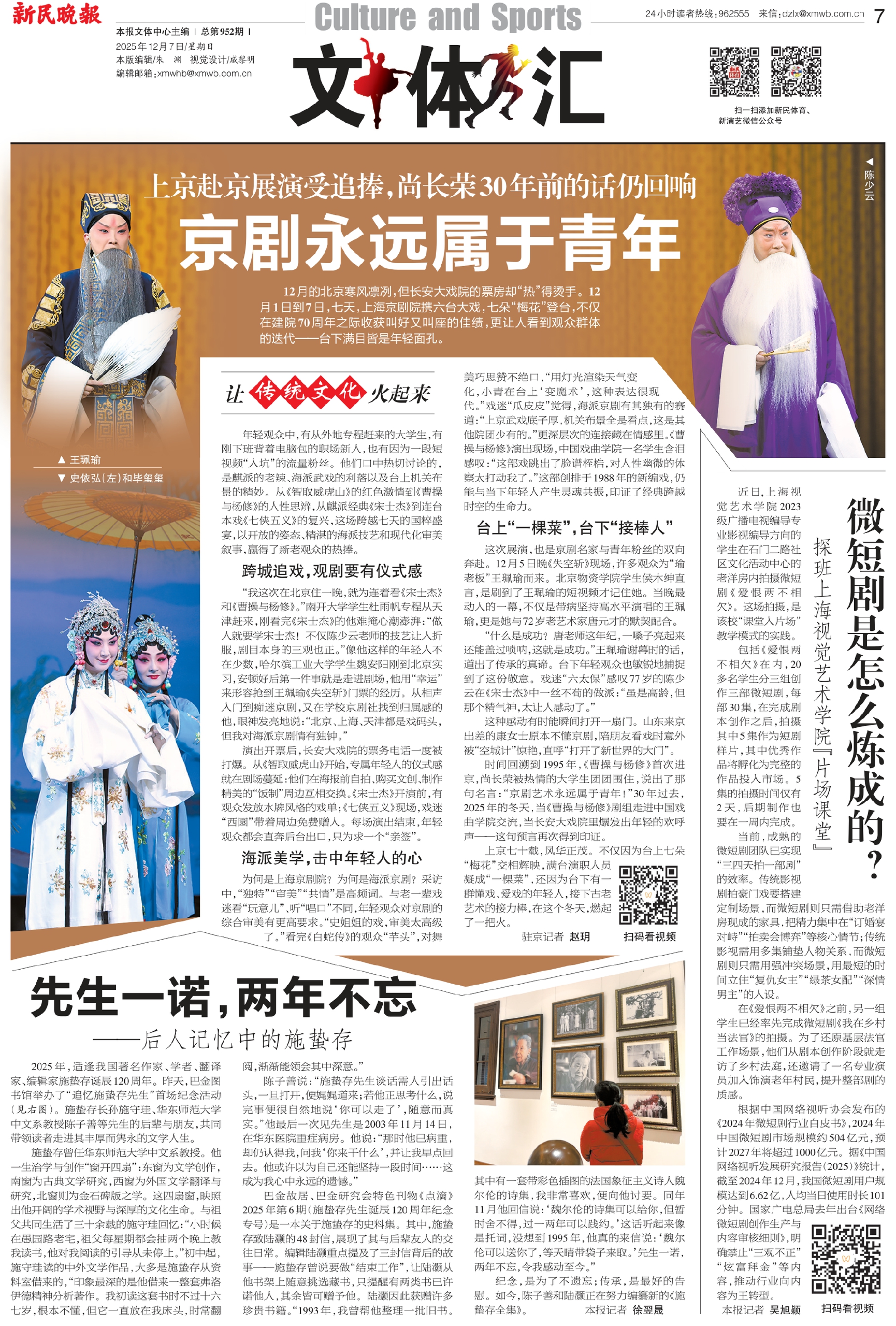 为何是上海京剧院?为何是海派京剧?采访中,“独特”“审美”“共情”是高频词。与老一辈戏迷看“玩意儿”、听“唱口”不同,年轻观众对京剧的综合审美有更高要求。“史姐姐的戏,审美太高级了。”看完《白蛇传》的观众“芋头”,对舞美巧思赞不绝口,“用灯光渲染天气变化,小青在台上‘变魔术’,这种表达很现代。”戏迷“瓜皮皮”觉得,海派京剧有其独有的赛道:“上京武戏底子厚,机关布景全是看点,这是其他院团少有的。”更深层次的连接藏在情感里。《曹操与杨修》演出现场,中国戏曲学院一名学生含泪感叹:“这部戏跳出了脸谱桎梏,对人性幽微的体察太打动我了。”这部创排于1988年的新编戏,仍能与当下年轻人产生灵魂共振,印证了经典跨越时空的生命力。