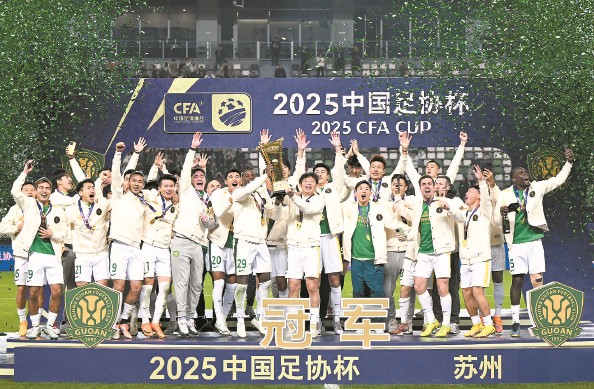2025中国足协杯决赛就此落幕,中超赛季前半程排名榜首、后半程持续低落的国安队问鼎足协杯,给本队波折起伏的赛季,画上了一个精彩的句号,由此确定获得下赛季亚冠精英联赛附加赛资格。同时,2026赛季中国足球超级杯的对阵双方也正式出炉,将由2025赛季中超冠军上海海港对阵北京国安。 本报记者 关尹