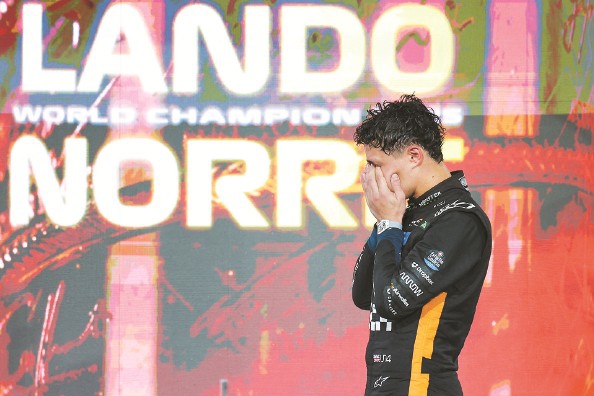 新的赛车尺寸、新的引擎规格、新的竞争对手、新的车手组合……明年或许是F1 70多年历史上,规格改动最大也最为明显的赛季。“未来依然充满挑战,因为谁也不知道会产生怎样的格局。”捧着年度总冠军奖杯的诺里斯很清楚,刚刚夺得的荣誉,是对自己和车队多年来努力研发、不断更改赛车,精进驾驶技术的回报,也为一个时代画上圆满的句号。“我从小就梦想成为世界冠军,很荣幸也很高兴,能在这个赛车时代的谢幕战中圆梦,希望接下来的比赛越来越精彩,我还能有更多次重温这种荣耀瞬间的机会。”新科世界冠军说道。