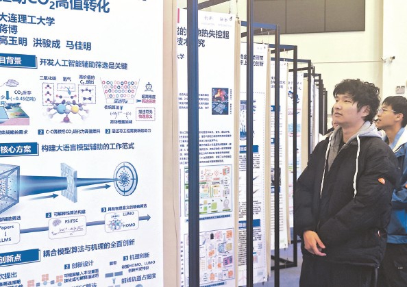 闭幕式现场,学生在看参赛项目展示板