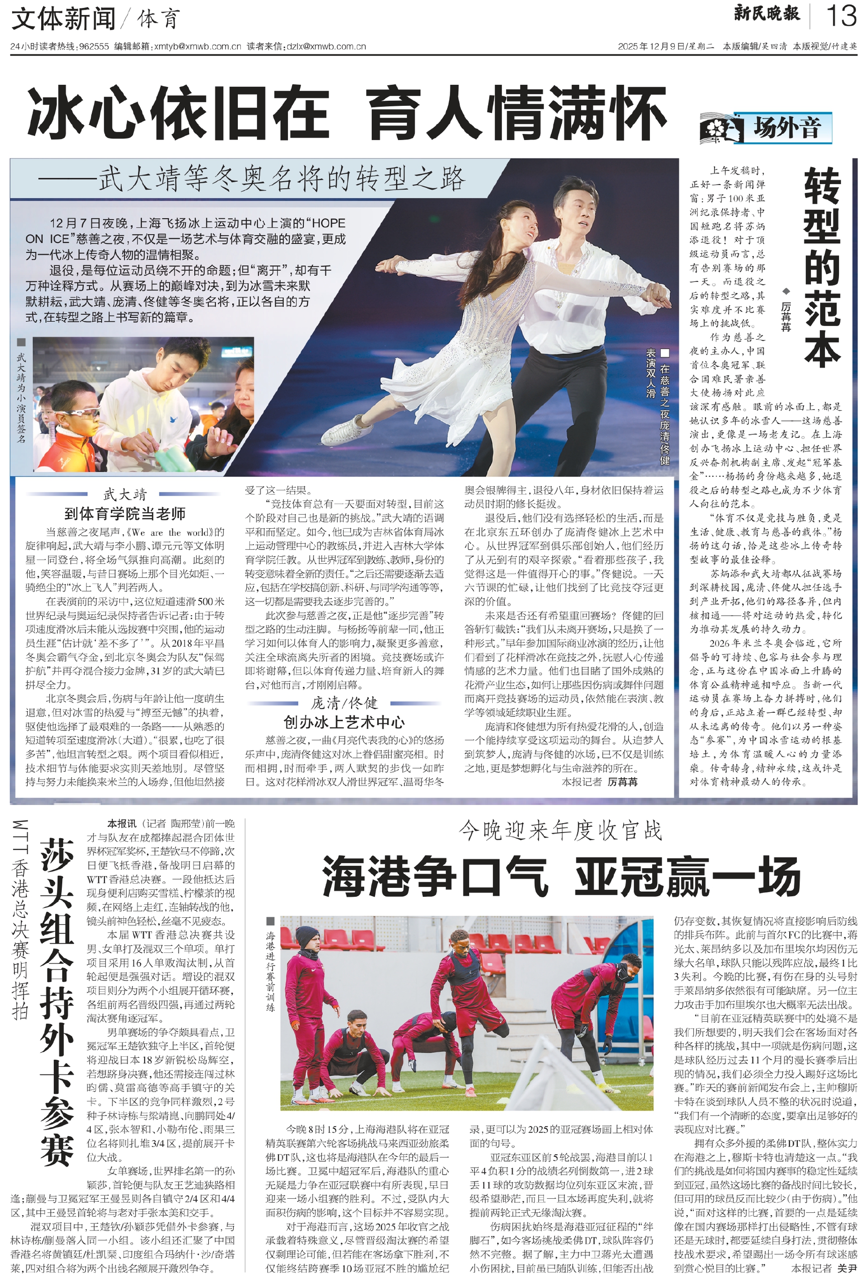 12月7日夜晚,上海飞扬冰上运动中心上演的“HOPE ON ICE”慈善之夜,不仅是一场艺术与体育交融的盛宴,更成为一代冰上传奇人物的温情相聚。
